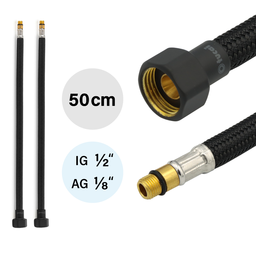 2x Flexschlauch DN8 IG 1/2"-M10x1 Schwarz & Schwarz Matt 500 mm