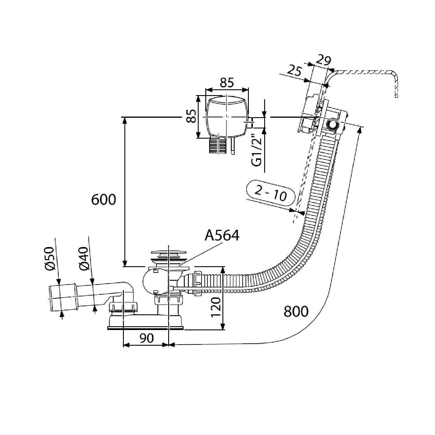 Alcaplast Ab- und Überlaufgarnitur 70 mm mit Füllautomat für Badewanne