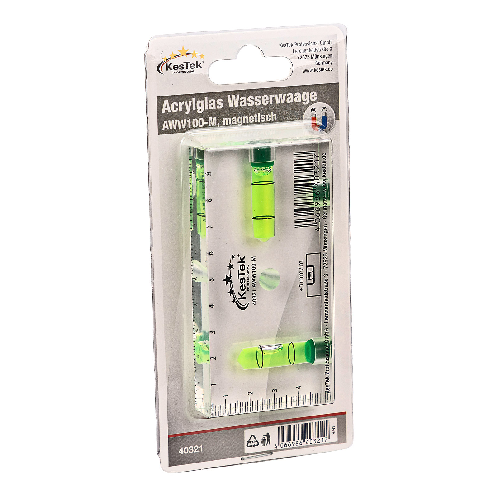 Die Wasserwaage besteht aus bruchfestem Acrylglas und hat 2 Libellen sowie 3 Magnete. Kann sowohl für horizontale aber auch vertikale Abmessungen verwendet werden.