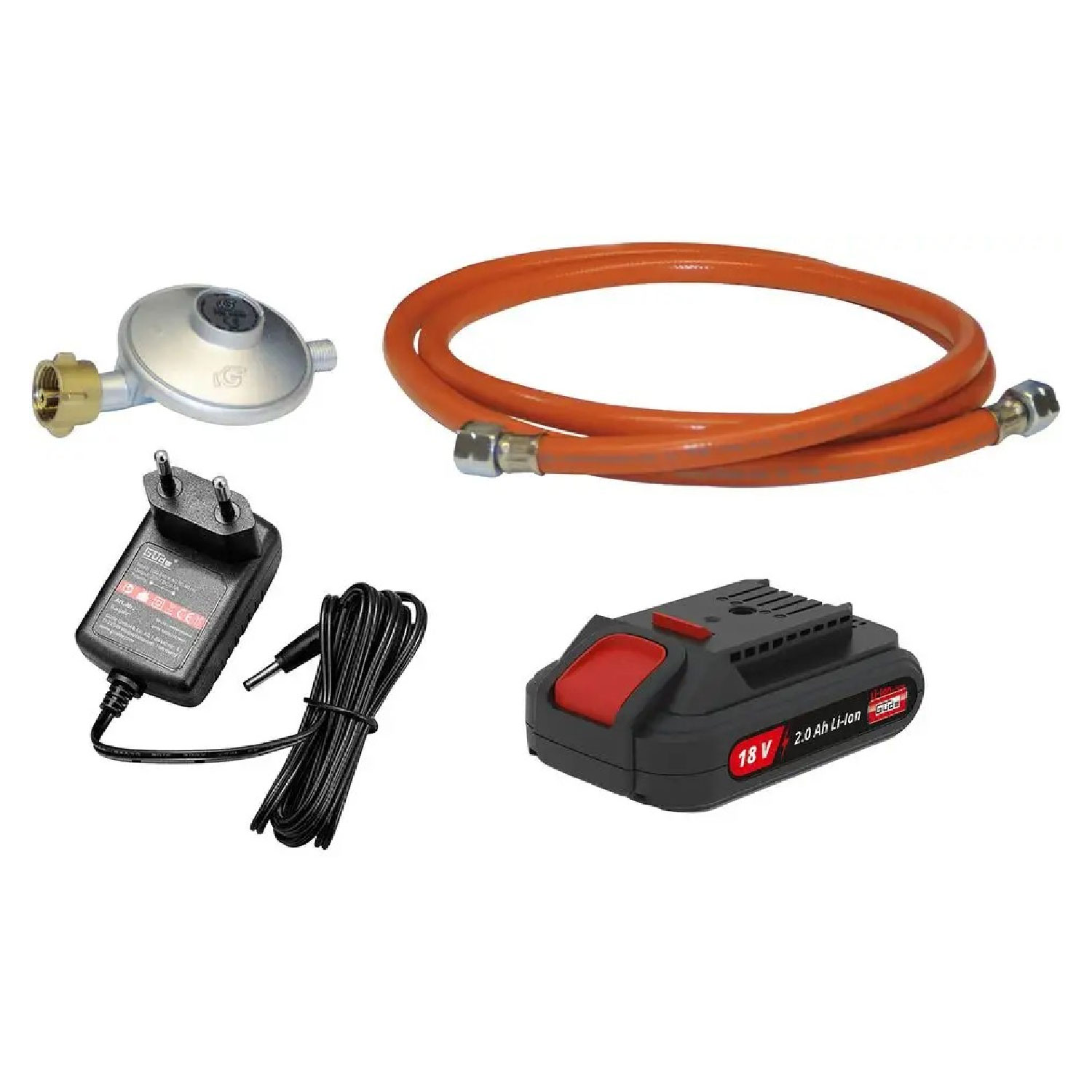 Als Teil der Güde 18V E³ Akkusystem-Gruppe eignet sich das bis zu 30 kW starke, regelbare Akku Gasheizgebläse GH 18-201-05 perfekt um gut belüftete Räume schnell und effektiv zu beheizen. Der 2,0 Ah Lithium Power Akku mit Einzelzellenüberwachung und Überlastschutz, sowie die stufenlosregelbare Heizleistung ermöglichen eine maximale Flexibilität in der Wahl des Einsatzortes. Für den sicheren Transport dorthin sorgt ein isolierter Tragegriff. Vor allem im Bauwesen, in der Landwirtschaft oder in Lagerräumen ist dieses Gerät eine kostengünstige Möglichkeit für die punktuelle Sofortbeheizung. Durch die Unabhängigkeit von Steckdosen wird der Heizer aber auch gerne für überdachte Außenbereiche, Zelte und Campingeinsätze genutzt. Ein Vorheizen ist bei diesem Gerät nicht nötig. Druckminderer, der 1,5 m lange Gasschlauch, Akku und Ladegerät sind im Lieferumfang enthalten. Somit wird zur Inbetriebnahme, bei geladenem Akku, lediglich eine Propan- bzw. Butanflasche benötigt – wobei sich das Gebläse natürlich auch ohne Gas zur reinen Ventilation verwenden lässt. Durch einen Drehregler lässt sich die Heizleistung von 18-30 kW ganz einfach stufenlos bestimmen. Das Gasheizgebläse GH 18-201-05 überzeugt also nicht nur durch seine einfache Bedienung, sondern mit dieser hohen Heizleistung natürlich auch in Sachen Sicherheit. Verbaut wurde hierfür serienmäßig eine Piezozündung, sowie ein vor Überhitzung schützendes Sicherheitsthermostat.
