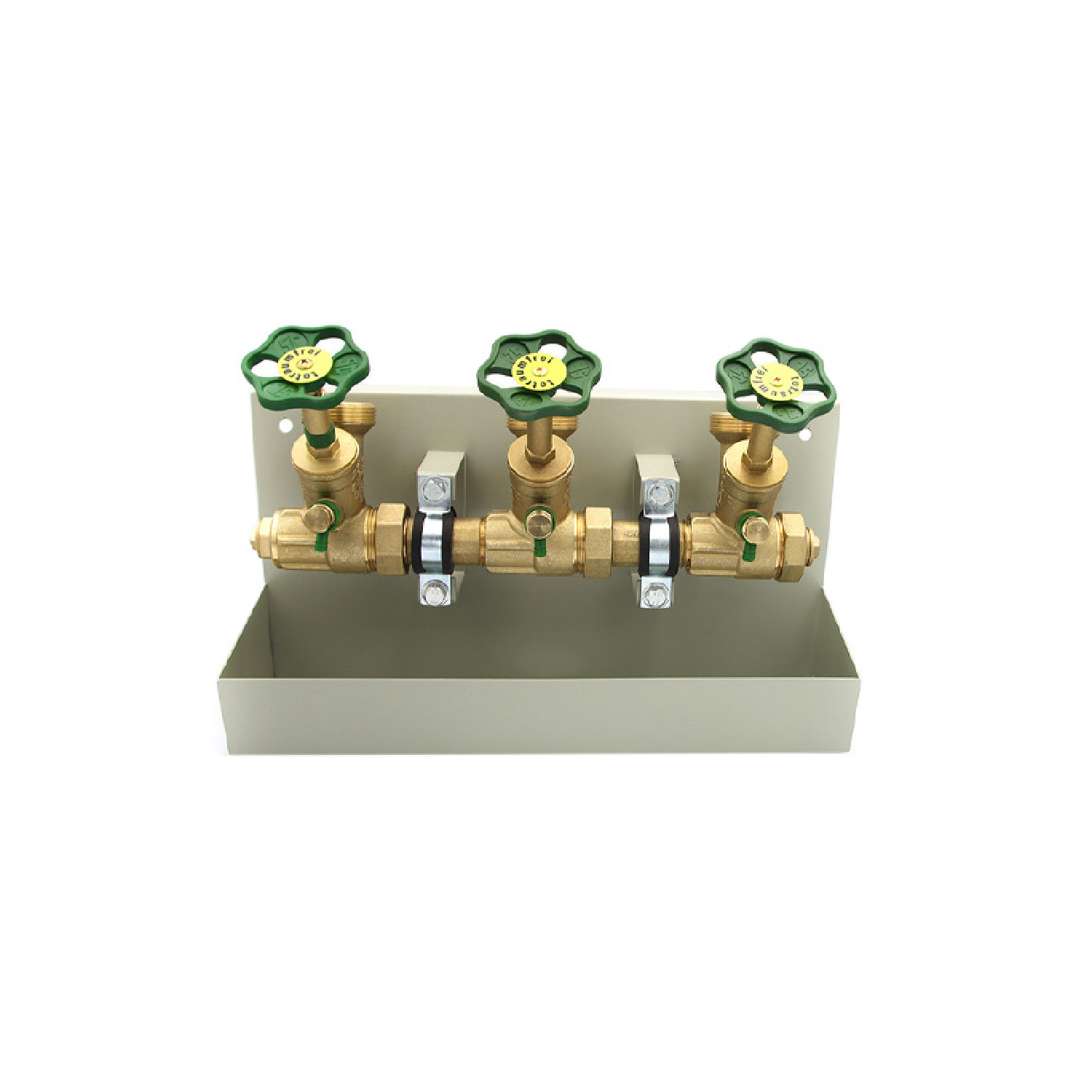 ATV-Station Kompaktwasserverteiler (mit Rinne), oberes Anschlussgewinde 1 1/2, G 1", 3-fach Zur individuellen Verteilung von Wasser an verschiedene Verbrauchsstellen. Ausstattung: Oberteil mit steigender Spindel Eingang G1" Oberes Anschlussgewinde 1 1/2" Komplett mit Kappe Stopfen, Rinne, Bef