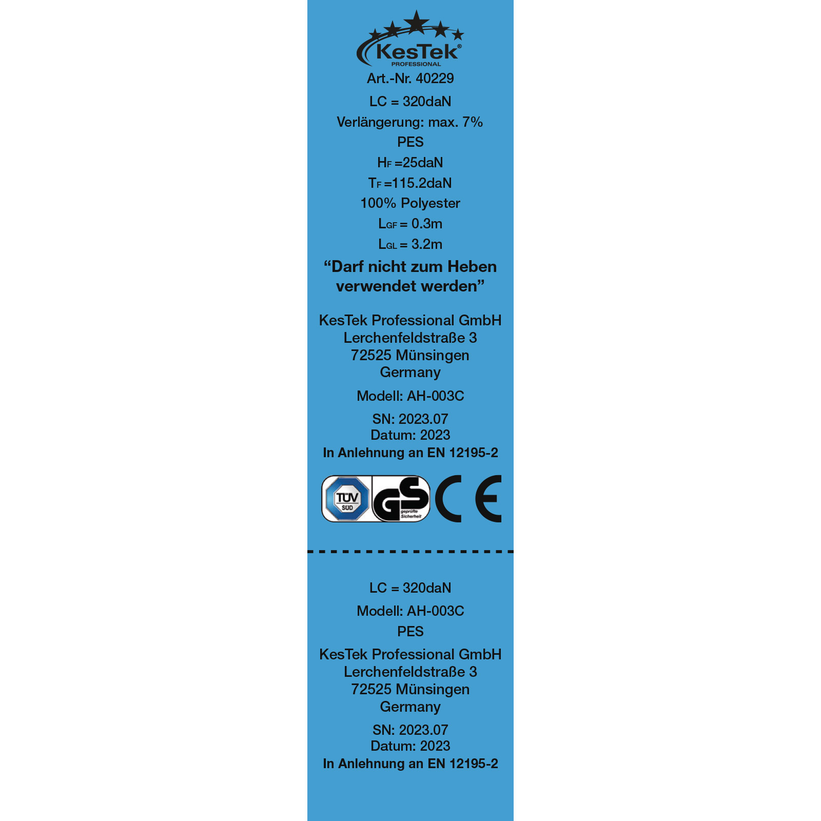 Das Ratschen-Spannelement ist mit einer automatischen Gurtaufrollung ausgestattet, die eine einfache und schnelle Handhabung ermöglicht. Der Gurt hat eine Länge von 3,2 m plus 0,3 m und eine Breite von 25 mm. Hergestellt aus robustem PES-Gurtband, bietet er hohe Zuverlässigkeit und Langlebigkeit. Am Gurtende befinden sich pastifizierte S-Stahlhaken, die für eine sichere Befestigung sorgen. Die maximale zulässige Zugkraft beträgt im geraden Zug 320 daN und im umgelegten Zug 640 daN. Dieses Produkt ist GS-geprüft nach EN 12195-2 und erfüllt somit höchste Sicherheitsstandards.
