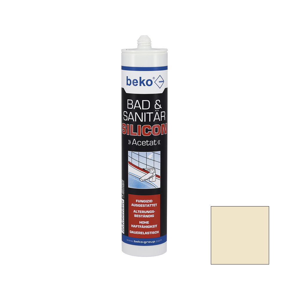 Bad & Sanitär Silicon »Acetat« beko eignet sich hervorragend für Anschlussfugen im gesamten Sanitärbereich. Unter Einfluss von Luftfeuchtigkeit vulkanisiert Bad & Sanitär Silicon »Acetat« zu einer dauerelastischen Masse