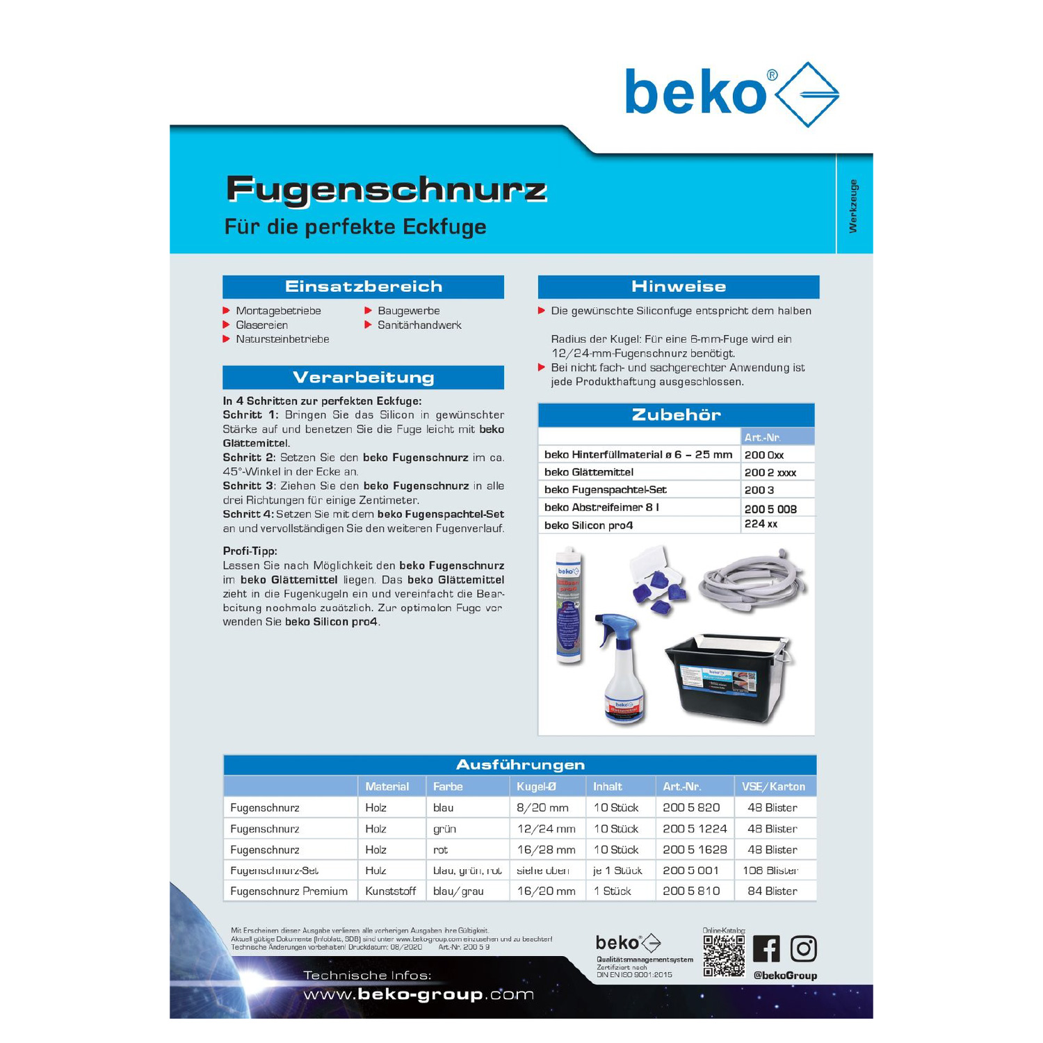 Einfaches Ausbilden der Eckfuge, perfektes Erscheinungsbild, leichtere Reinigung der Eckfuge, in verschiedenen Ausführungen lieferbar