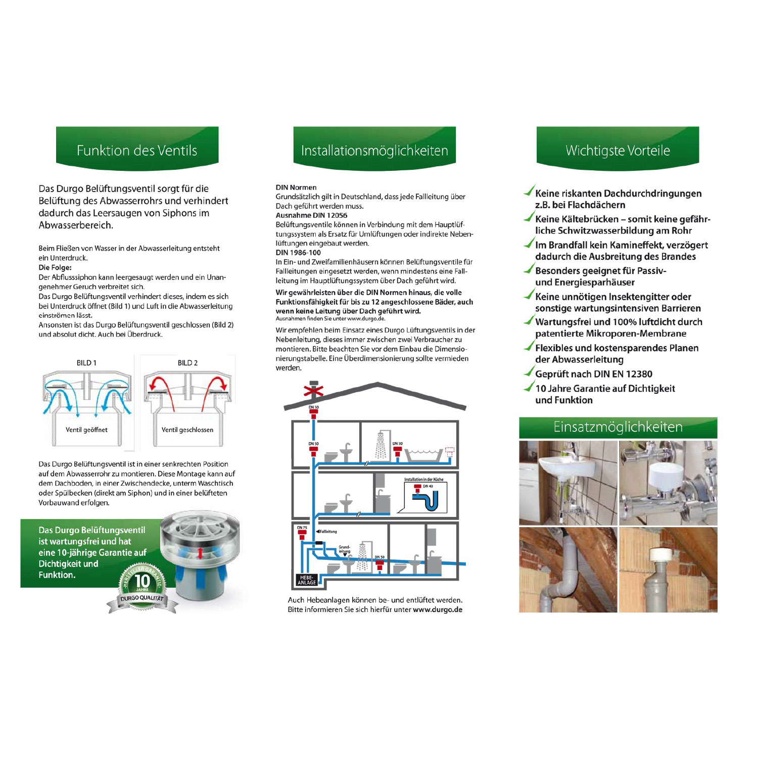 - Durgo 7000.050 Belüftungsventil DN50 Rohrbelüfter Abwasser HT KG Rohr