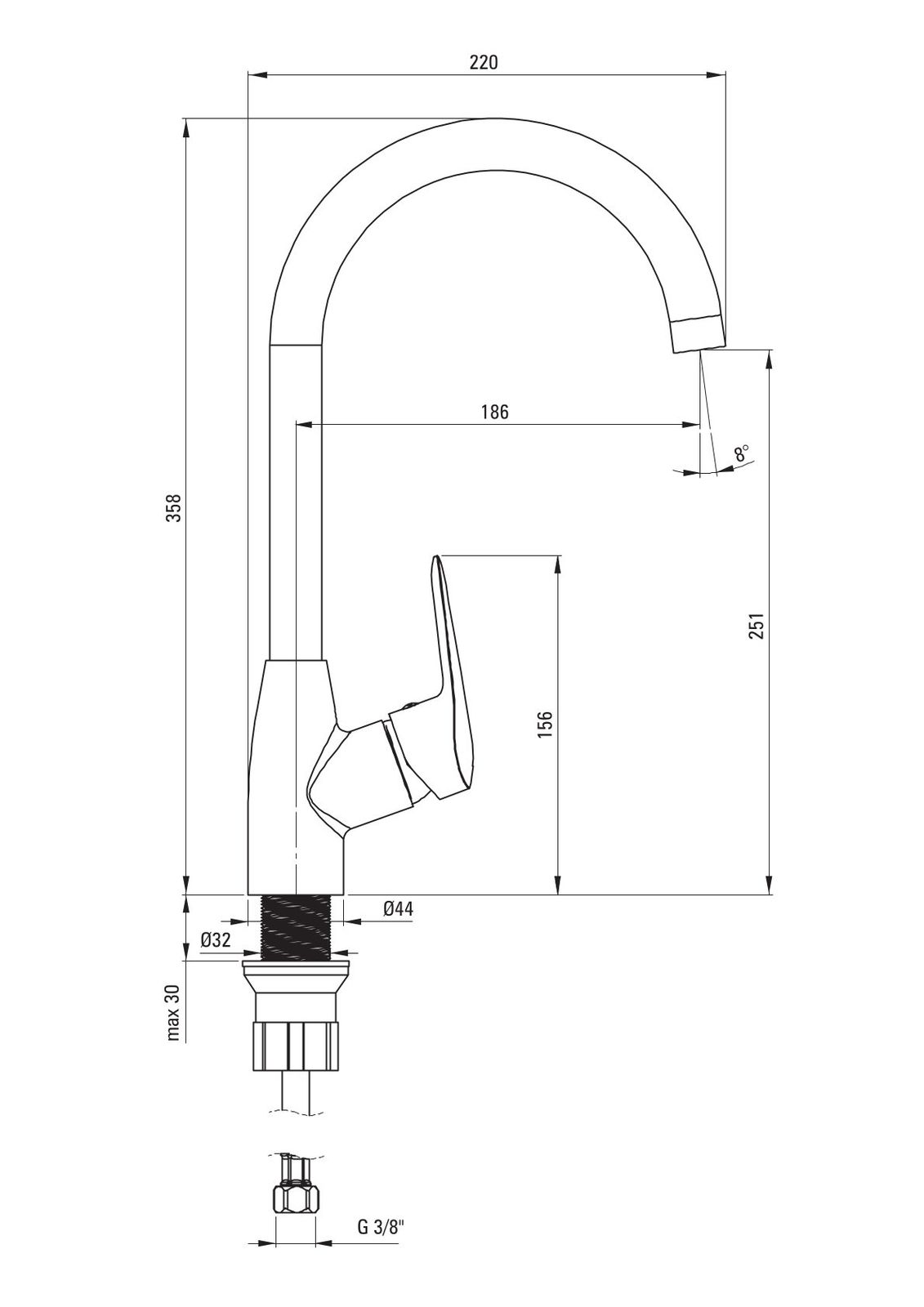 Installationsgewinde: 3/8"