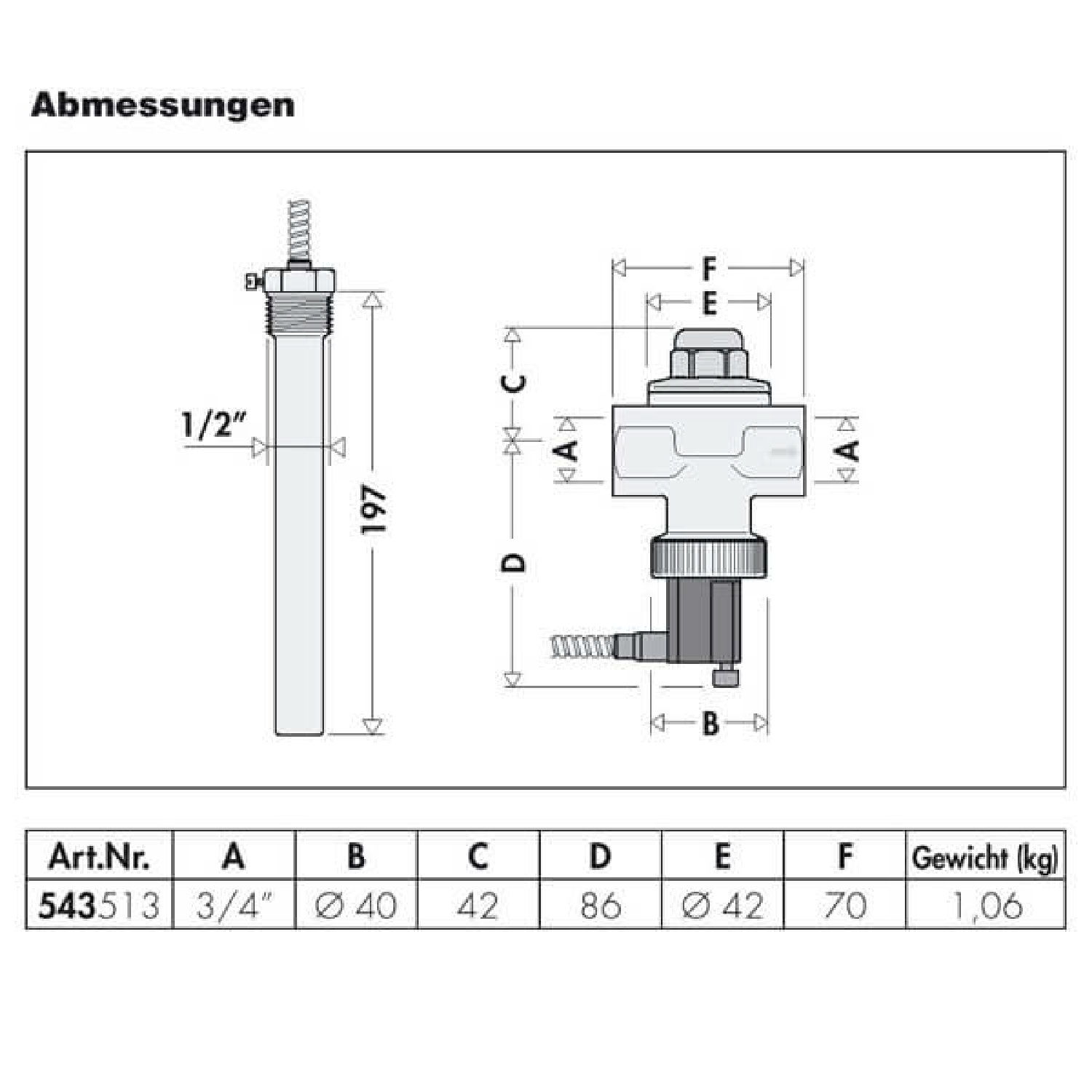- Tauchhülse für Fühler: 1/2” AG