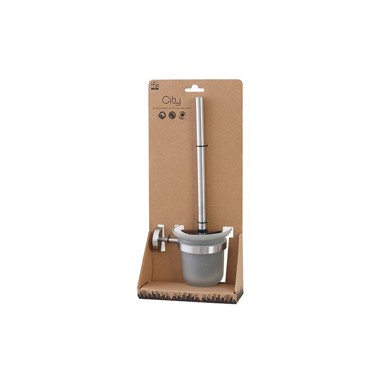 Der Bürstenhalter aus der City-Serie ist ein eleganter WC-Bürstenhalter zur Wandmontage, gefertigt aus Edelstahl und Glas.