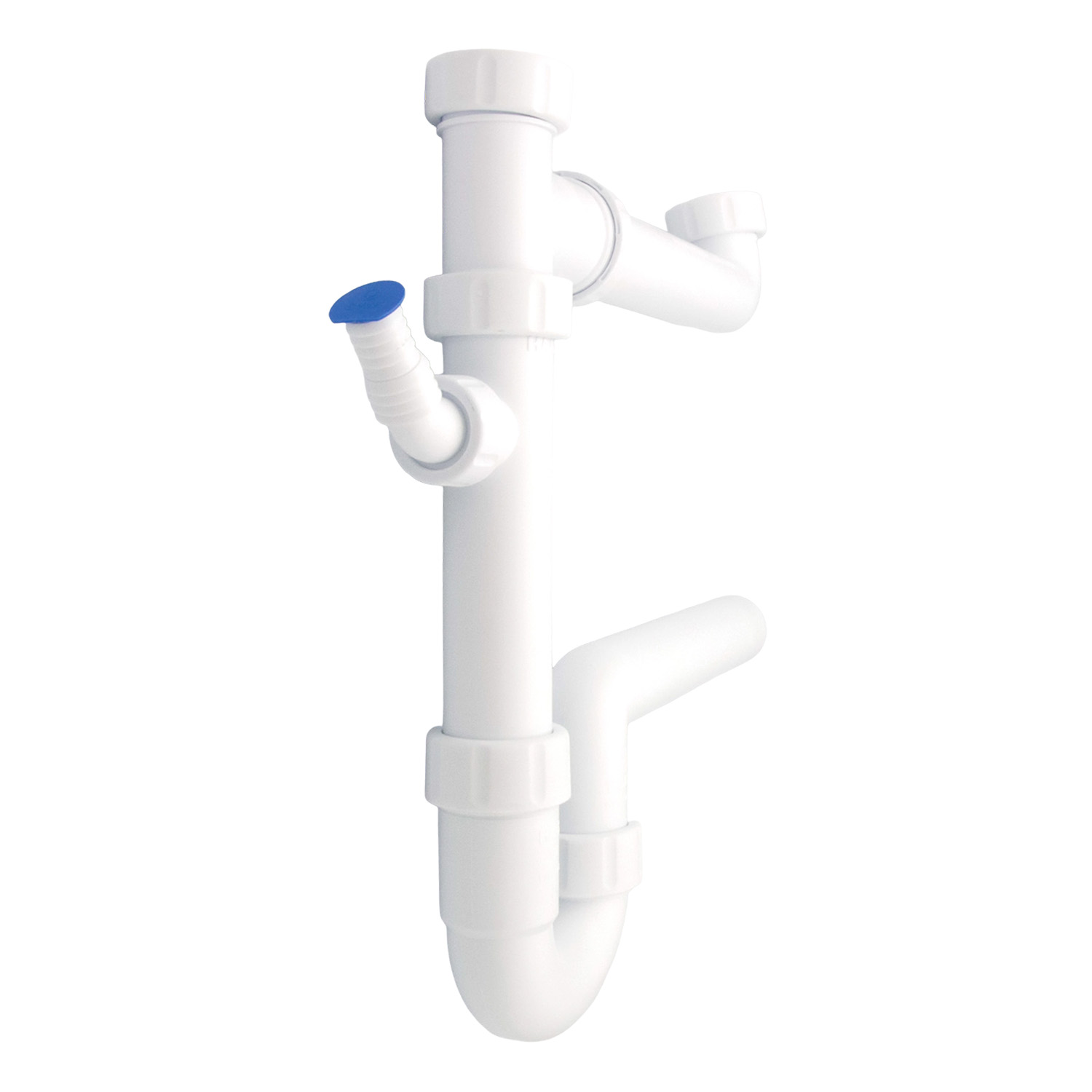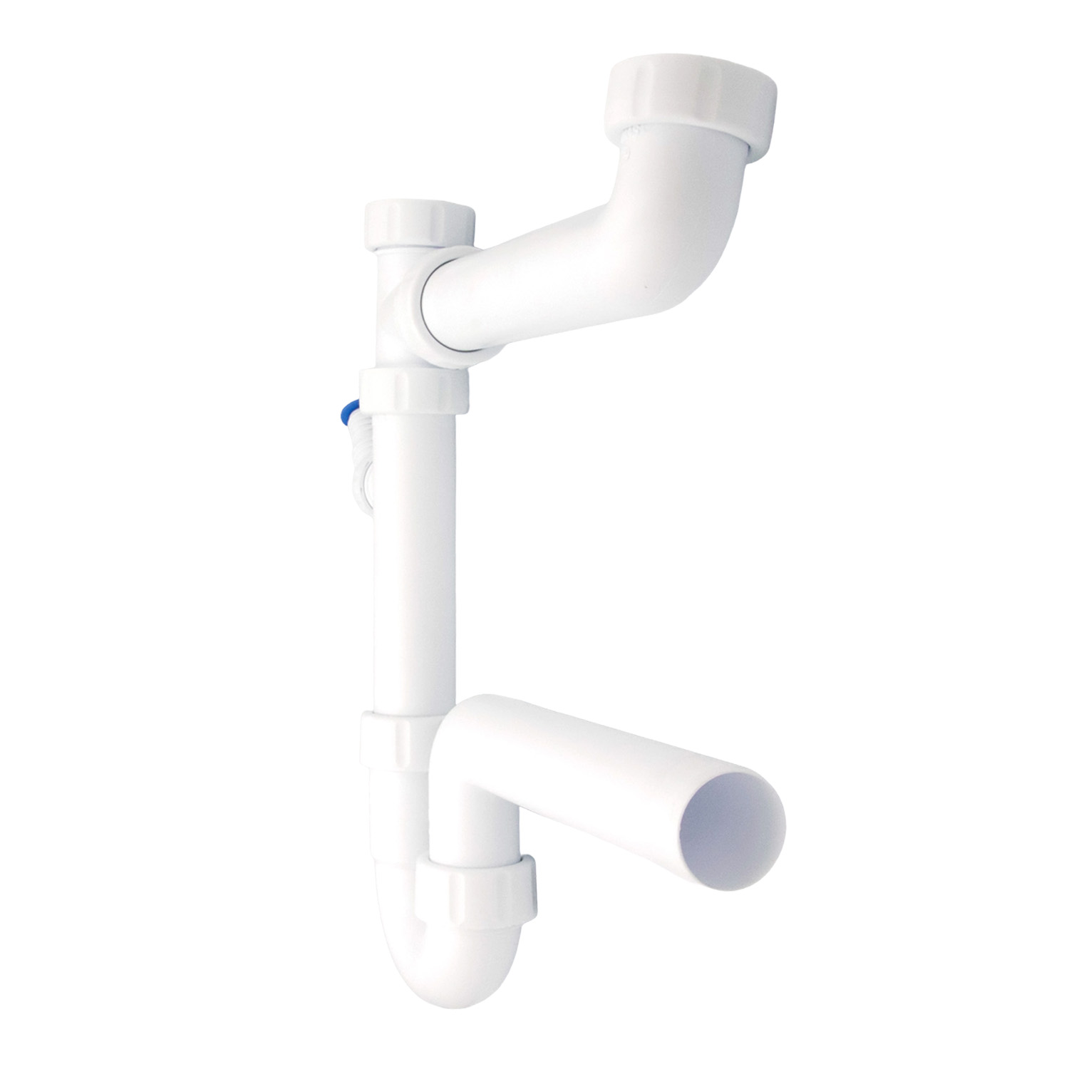 Siphon aus schlagfestem Polypropylen mit 240 mm langem Ablaufrohr und höhenverstellbarem Tauchrohr für flexible Montage. Der Kombi Geräteanschluss ¾ Zoll auf 1 Zoll erlaubt den Anschluss gängiger Haushaltsgeräte. Lieferung inklusive Montageanleitung.