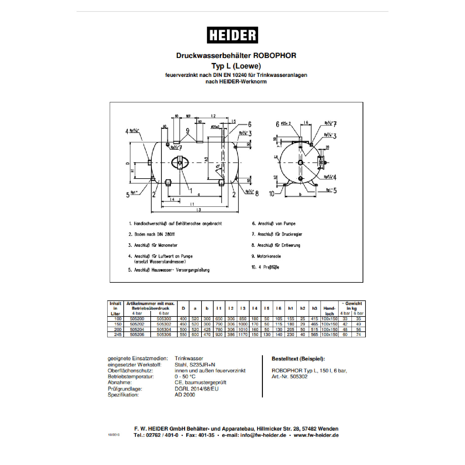 Herstellerinformation Heider Robophor Druckkessel finden Sie auf fw-heider.de