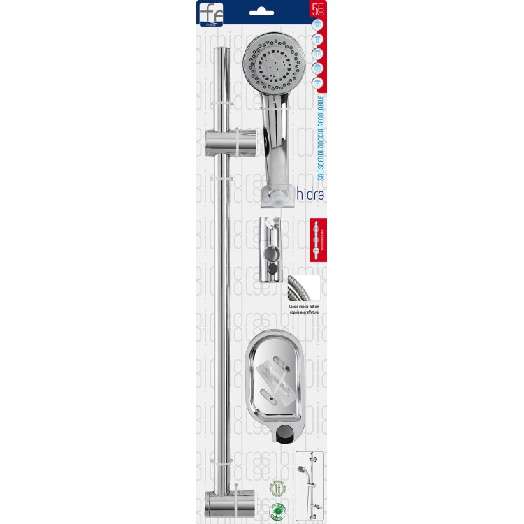 Verstellbare Duschstange mit 5 Funktionen Handbrause Chrom "Hidra"