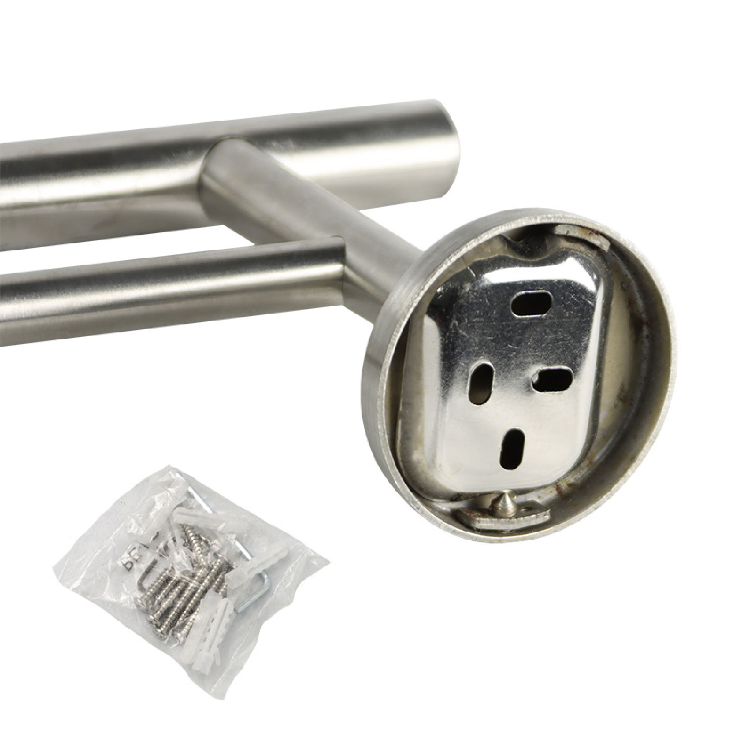 Lieferumfang: Handtuchhalter, 8 Dübel, 8 Schrauben, 4 Madenschrauben und Imbusschlüssel
