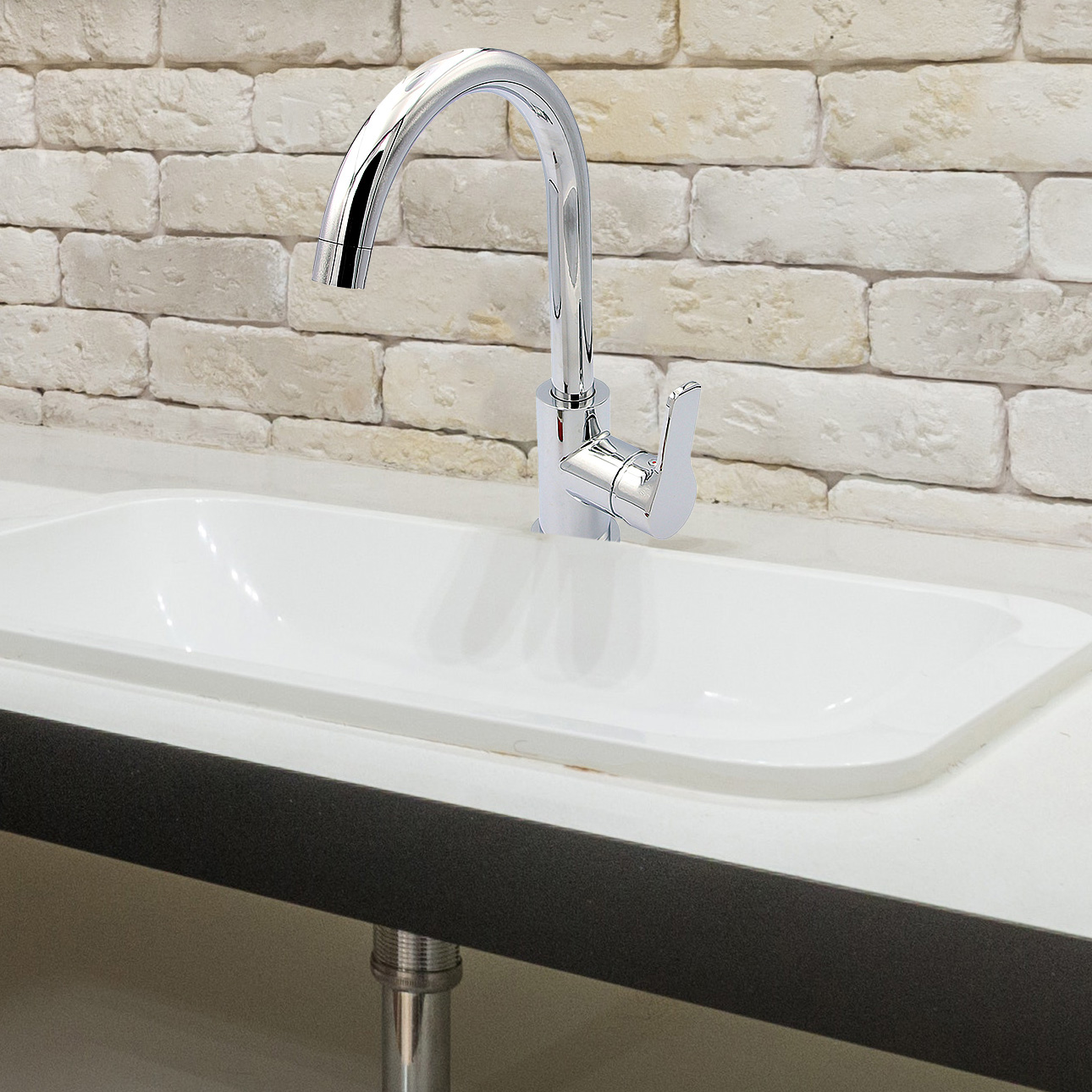 Die Einhebel Waschtischarmatur "Albuch" hoch rund mit Anschlussset überzeugt durch ihre formschöne und klassische Optik. Ein Blickfang, egal ob in der Küche oder im Badezimmer. Durch seine Form liegt der Metallgriff sehr gut in der Hand und ist angenehm zu öffnen, dadurch kann der Wasserstrahl problemlos eingestellt werden.