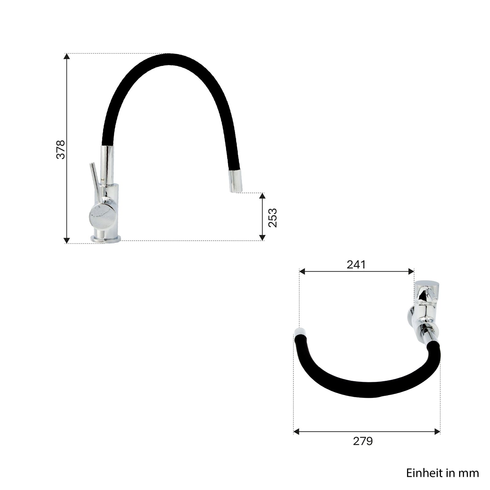 Die Einhebelmixer flexibel schwenkbar schwarz 360° mit Anschluss-Set überzeugt durch ihre formschöne und klassische Optik und bringt Ihre Küche zum Strahlen. Durch seine Form liegt der Metallgriff sehr gut in der Hand und ist angenehm zu öffnen, dadurch kann der Wasserstrahl problemlos eingestellt werden.