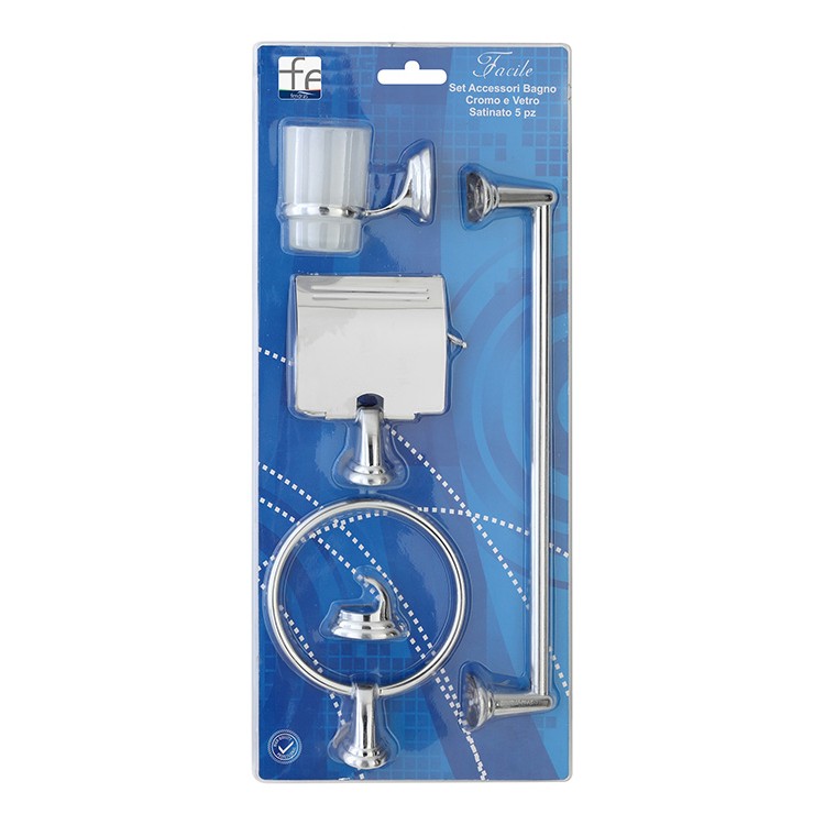 Das Badezubehör Set aus der Facile-Serie von Feridras vereint Funktion und Stil in einem durchdachten Komplettpaket. Mit fünf perfekt aufeinander abgestimmten Accessoires bekommst du alles, was du für eine harmonische und moderne Badezimmereinrichtung brauchst.