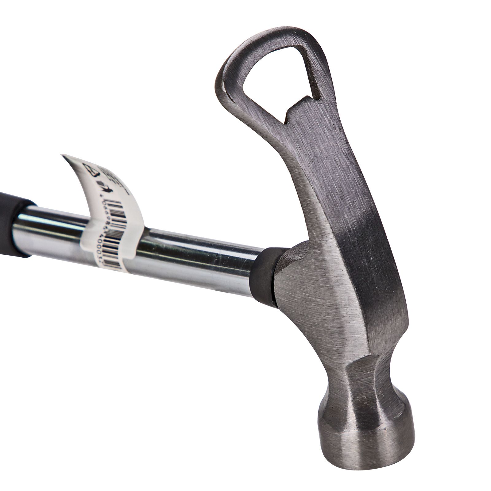 Hochwertiger Hammer mit integriertem Flaschenöffner. Mit gummiumantelten Griff und aus langlebigem Stahl gefertigt.