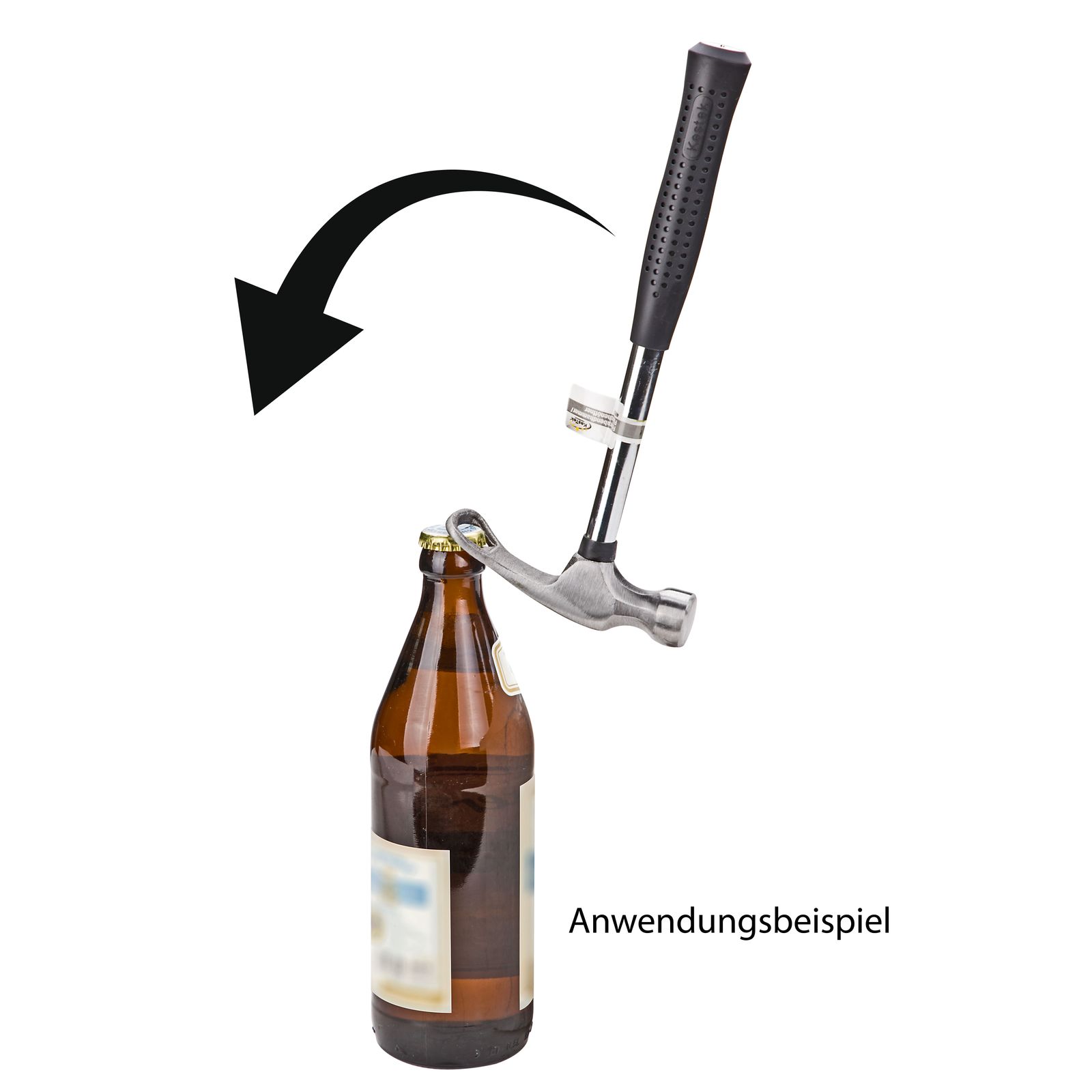 Hammer mit integriertem Flaschenöffner Hammerkopf aus Stahl Schaft aus Stahl, galvanisch verzinkt Gummiummante