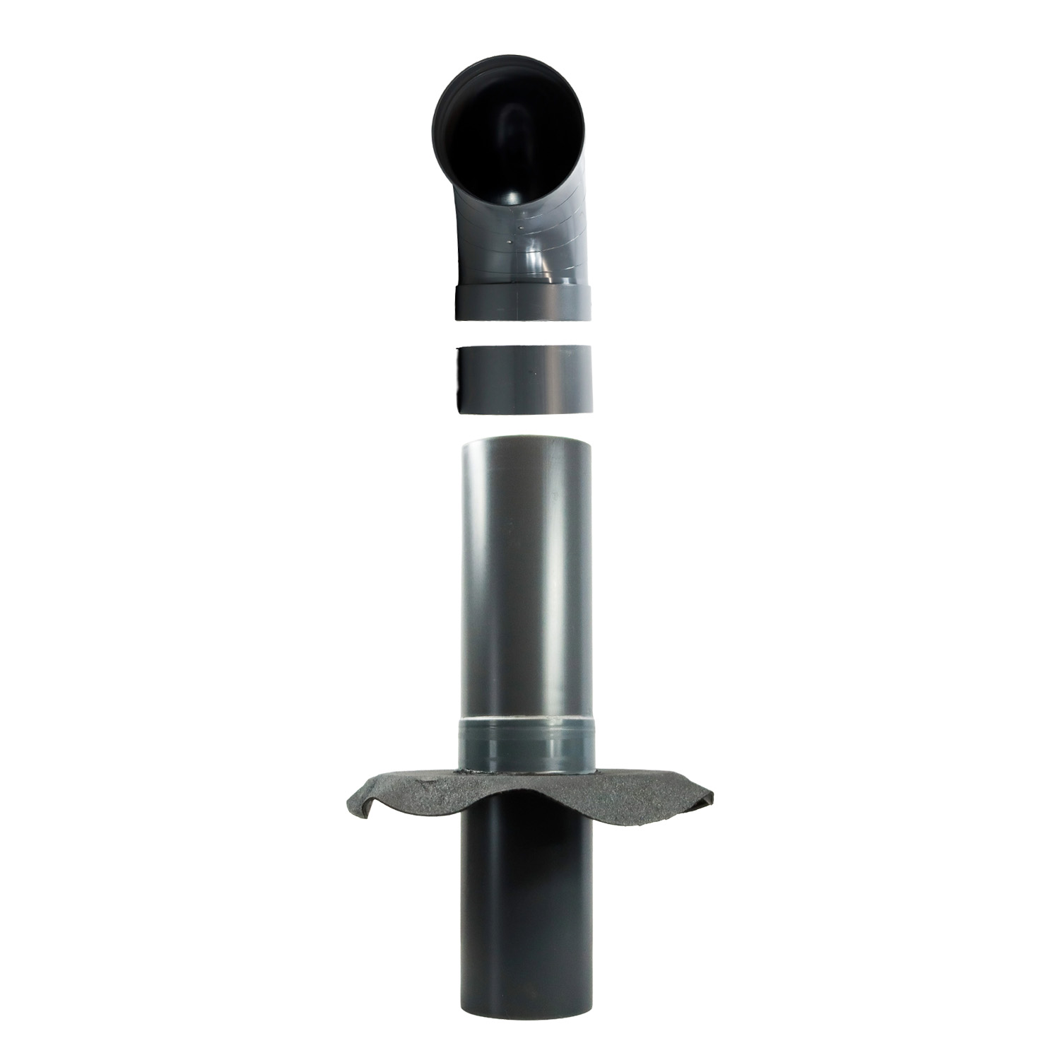 - Für optimale Dampfdichtigkeit und Rückstausicherheit muss die Steckverbindung zwischen einem FLECK-Unterteil und der Schwanenhals-Aufstockung bei den Durchmesser DN 50 mit PVC-Kleber fachgerecht verklebt werden
