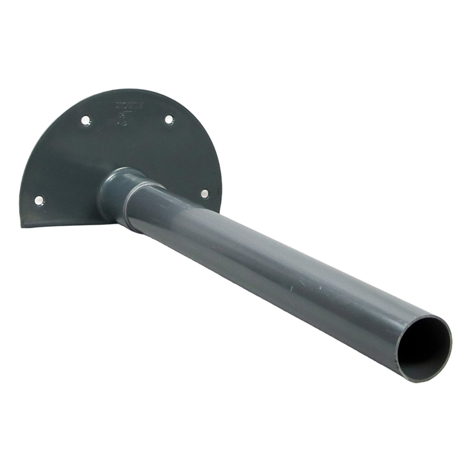 Der Fleck Flachdach Winkelablauf mit Flansch aus Hart PVC ist ein horizontales Entwässerungselement zur Freispiegelentwässerung durch die Attika bei Flachdächern.