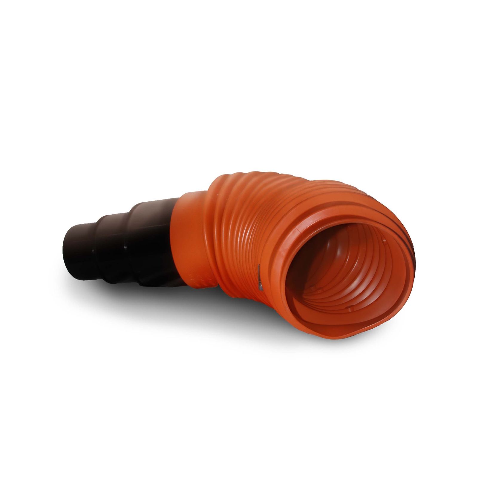 Der aus einem hochwertigen, speziellen Weich-PVC gefertigte Venduct Flex-Anschlussschlauch bietet eine höhere Beständigkeit und ermöglicht dauerhaft dichte Verbindungen. Der Schlauch ist dauerhaft UV-stabil, was speziell für den Einsatz bei Grundleitungslüftungen ohne Abdeckung erforderlich ist. Durch die höhere Wandstärke ist er auch sehr robust gegenüber mechanischen Einflüssen. Der Flex-Anschlussschlauch überbrückt Längendifferenzen und gleicht Achsversätze zwischen Dachdurchgang und HT-Leitung aus. Der angespritzte Adapter gewährleistet eine Dichtigkeit, so dass der Flex-Schlauch auch waagerecht in die Muffenverbindung eingeführt werden darf.