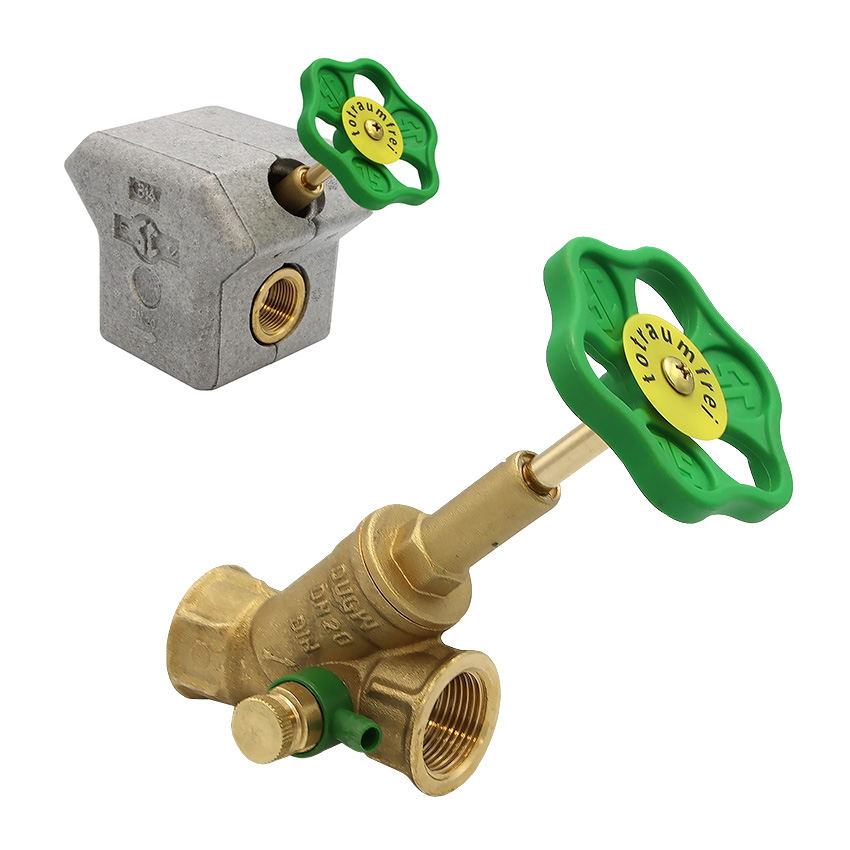 Ventil zur Regulierung des Wasserstroms per Quetschreduzierung, mit Ventil zur Entleerung der Wasserleitung (Bspw. um diese Winterfest zu machen). Ventilstellung durch steigende Spindel von außen erkennbar. Trinkwasser geeignet: DIN-DVGW-Zulassung