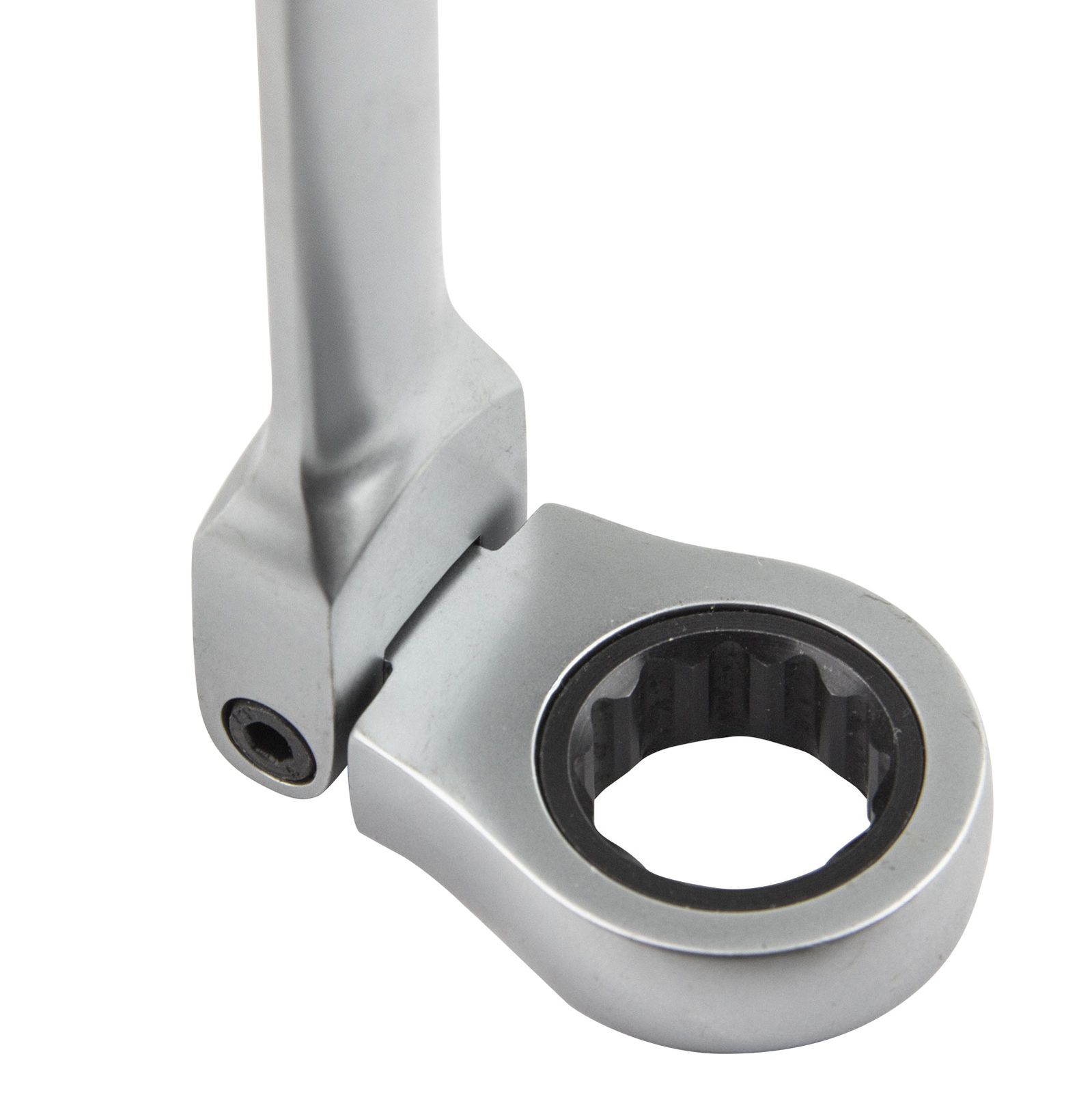 Der Schlüssel ist aus hochwertigem Chrom-Vanadium-Stahl gefertigt, mit einem Drehgelenk und einer 72 Zahn-Ratsche ausgestattet, wodurch ein präzises Arbeiten, auch an schwer zugänglichen Stellen sehr erleichtert wird.