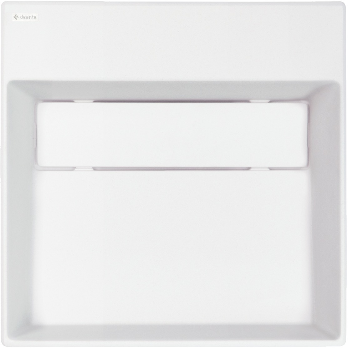 Weißes Aufsatzwaschbecken in Granitoptik mit verdecktem Ablauf