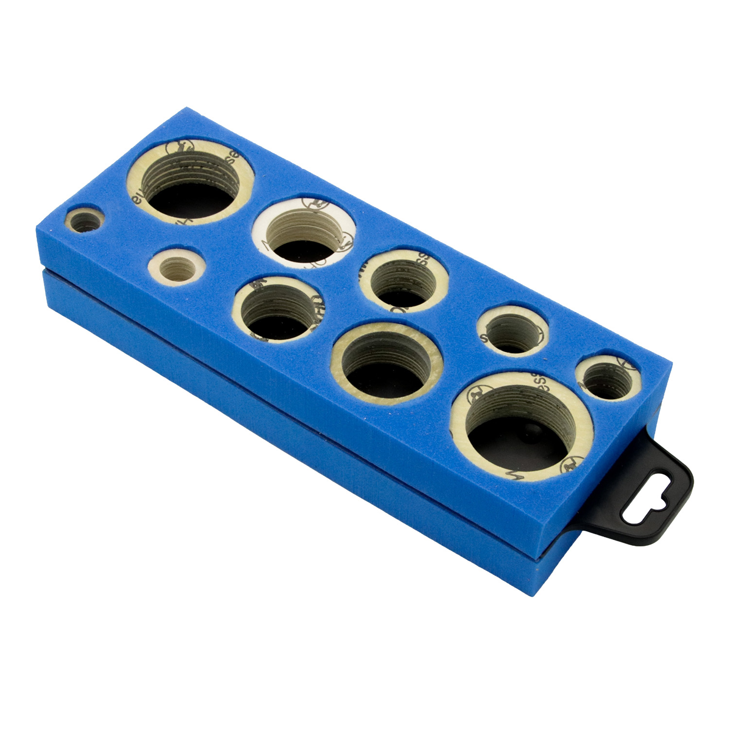 }Der Dichtungsblock 186 Teilig bietet Installateuren eine praktische und übersichtliche Auswahl an Press?Dichtungen für die Heizungsinstallation. Der Block ist beidseitig b