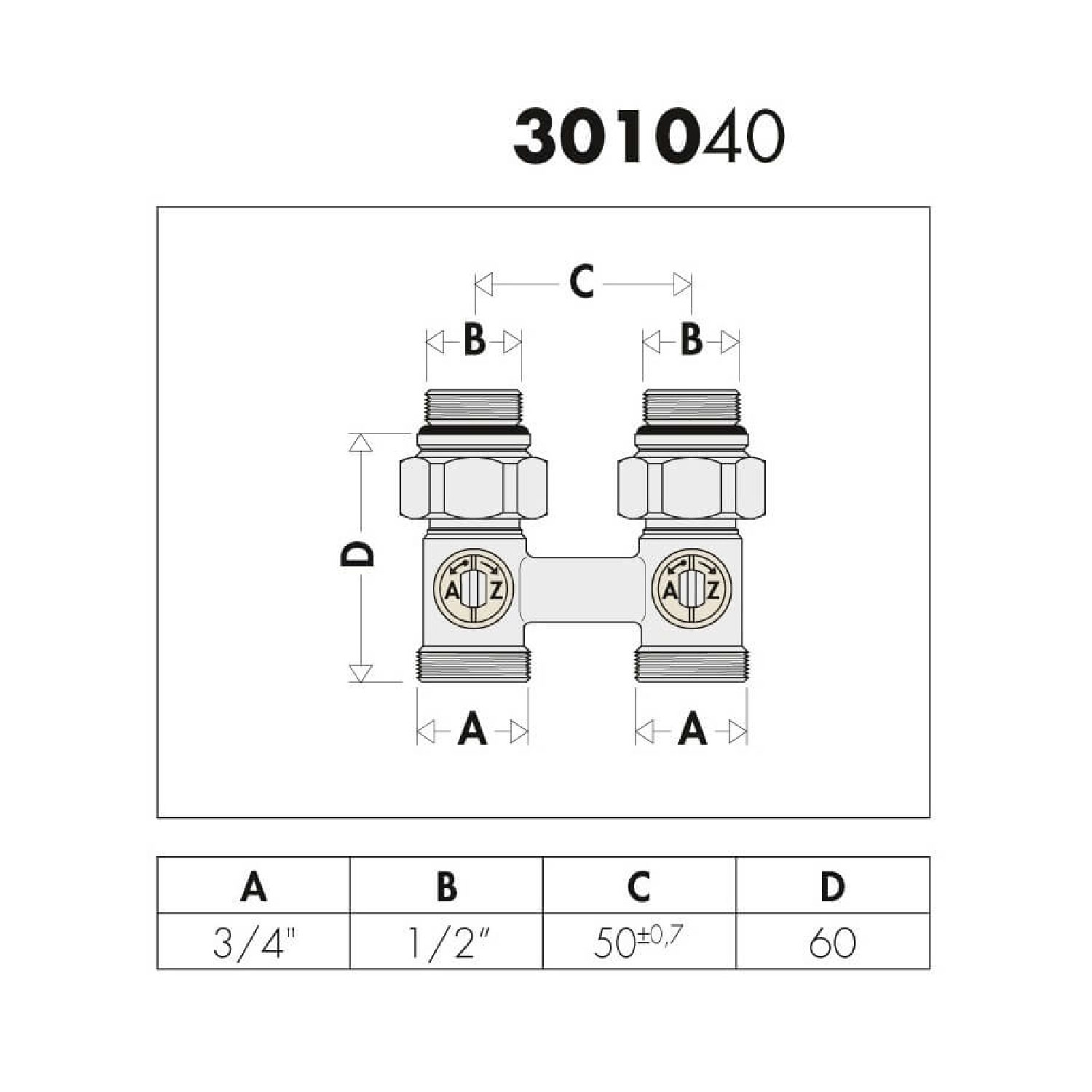 Produktdaten Hahnblock 3/4" x 1/2" Zweirohr Durchgang Messing: