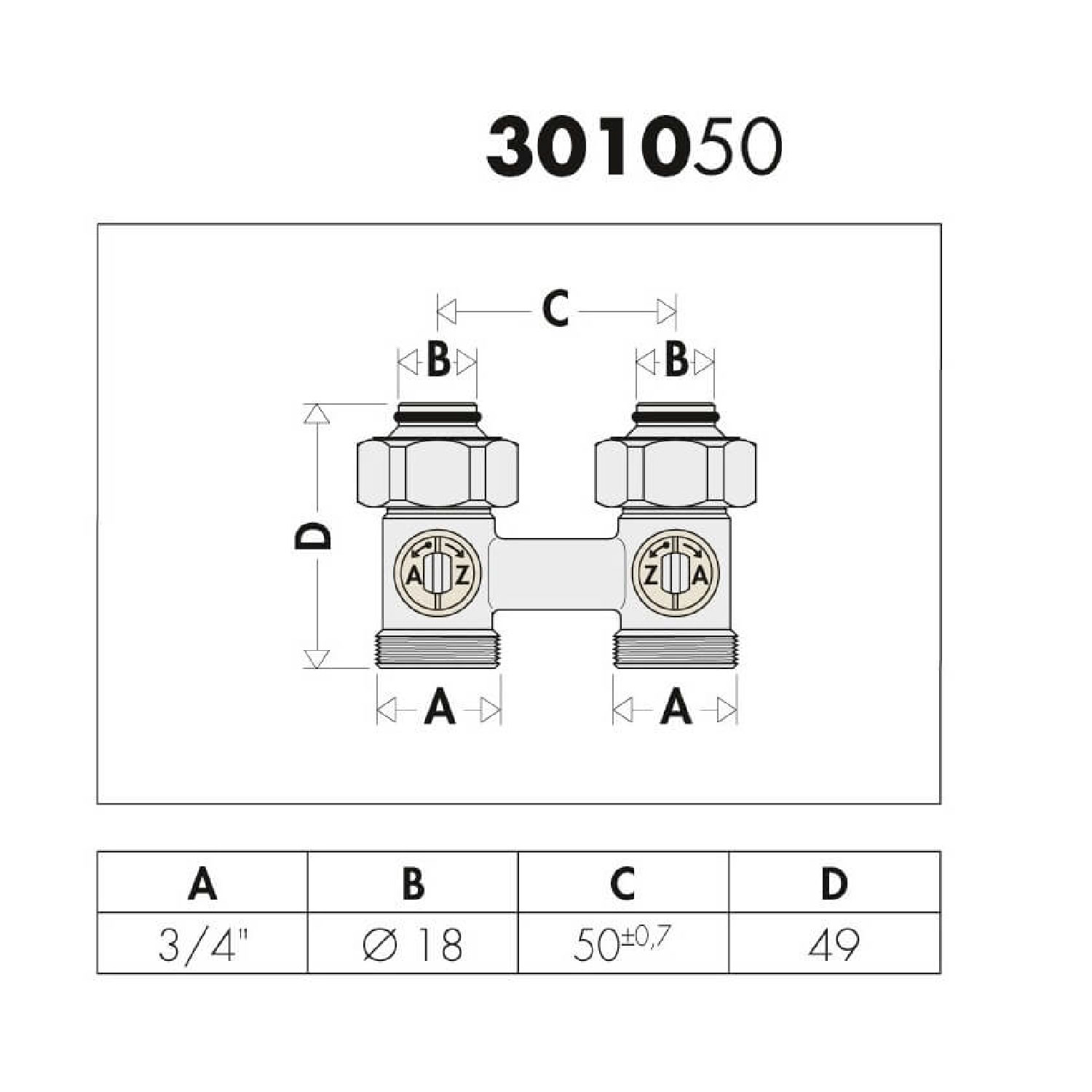 Caleffi Zweirohr Hahnblock 3/4 Zoll Durchgang Eurokonus