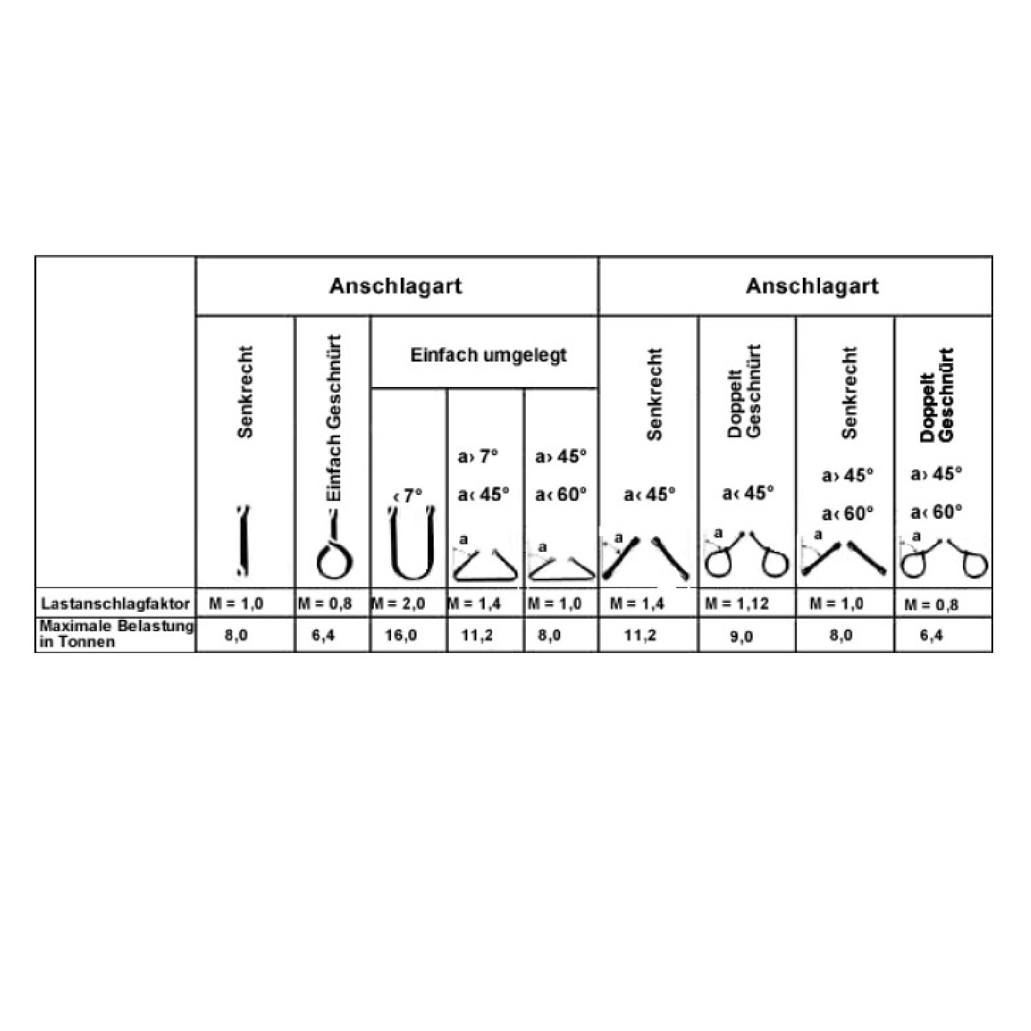 ✓ Zugfestigkeit 8 to senkrecht einfach bis zu 16 to einfach umgelegt