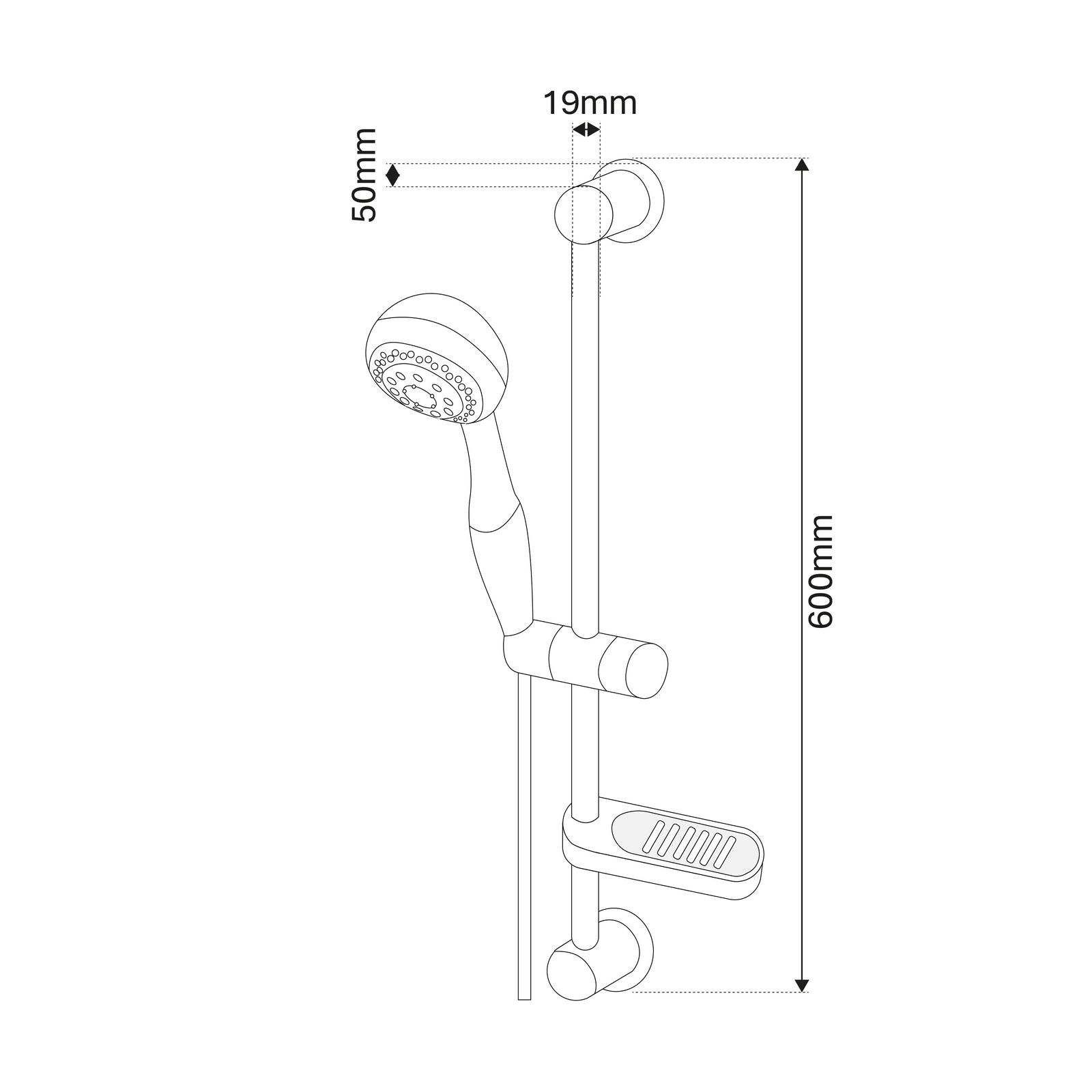 • Maße Duschstange: Höhe 60?cm, Tiefe 5?cm, Ø 1,9?cm