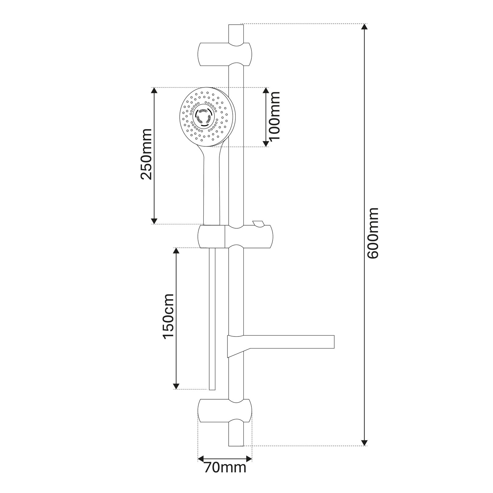 Duschstange: Höhe 60?cm, Tiefe 7?cm, verstellbarer Bohrabstand