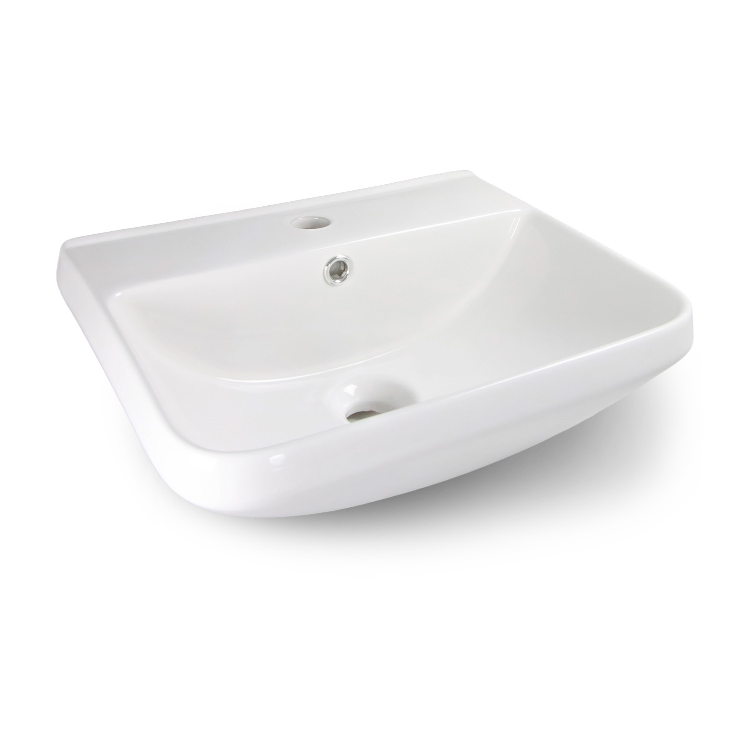 Dieses hochwertige Wandhängewaschbecken aus robuster Sanitärkeramik überzeugt durch das zeitlose Design in klassischem Weiß. Durch die wandhängende Montage wird Platz gespart und das Waschbecken ist somit auch ideal für kleine Badezimmer oder Gäste-WCs geeignet.