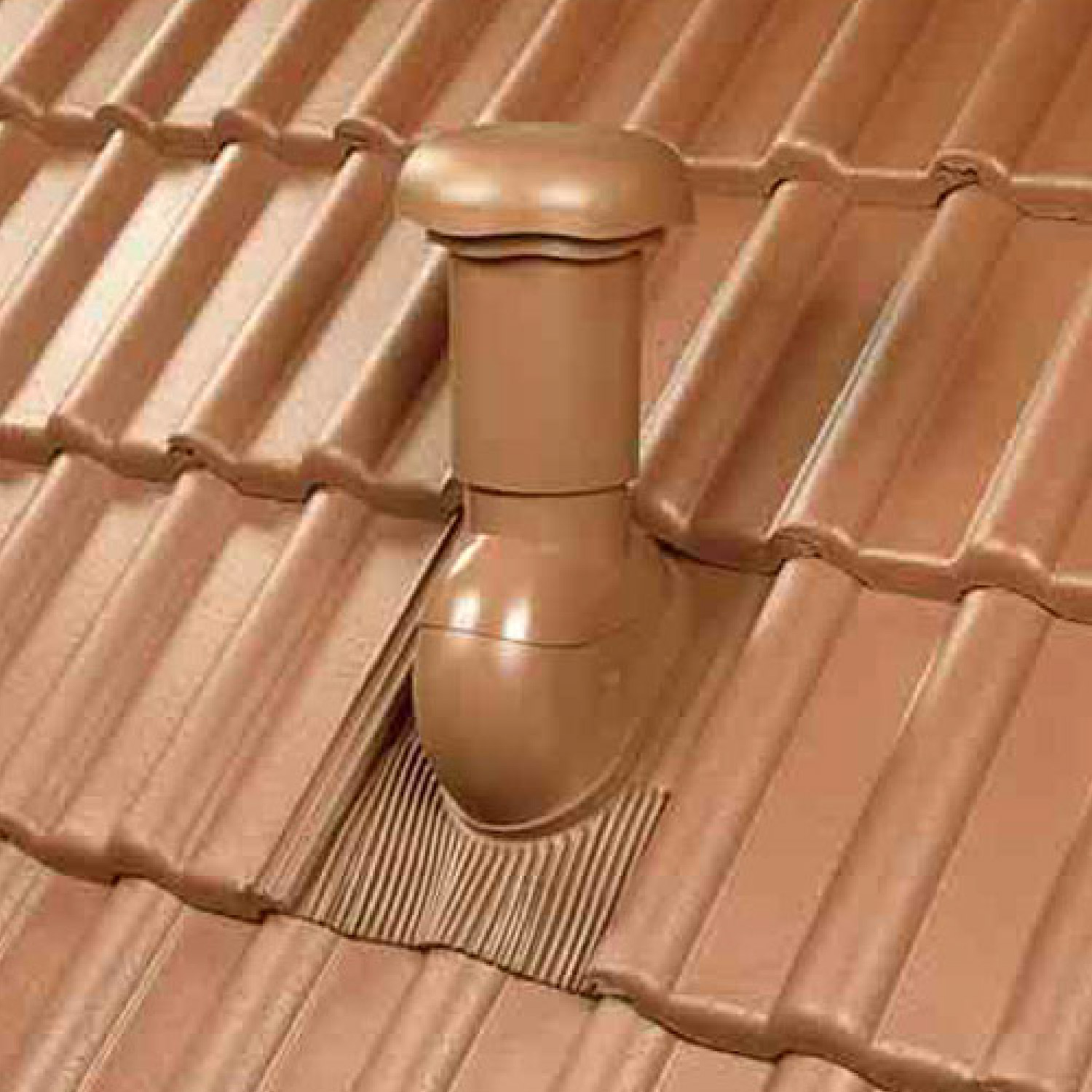 Die aerodynamisch optimierte Entlüftung des Venduct® Raumentlüfters durch Rohrgeometrie, Luftleitring und Regenhaube reduziert Verwirbelungen auf ein Minimum und stellt eine effektive Abluftleistung - insbesondere bei ventilatorunterstützter Abluft - sicher. Anfallendes Kondensat wird mittels einer Kondensatrinne sicher auf die Außenseite oberhalb der Dacheindeckung abgeführt. Der Venduct® Raumentlüfter - passend zu Venduct® Grundplatten und Venduct® Universellen Grundplatten - ist geeignet für die motorische Entlüftung in Küche und Bad nach DIN 18017 oder als Abwaserrohrbelüfter nach DIN 1986 T 100. Venduct® Raumentlüfter sind einsetzbar für jedes Dach aus Tonziegeln, Betondachsteinen, Schiefer und Wellplatten.