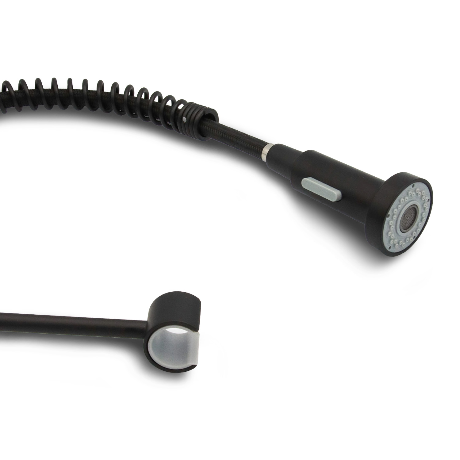 Die flexible Auslaufarmatur mit Edelstahlfeder bietet maximale Beweglichkeit und ist ideal für intensives Spülen und Reinigen.