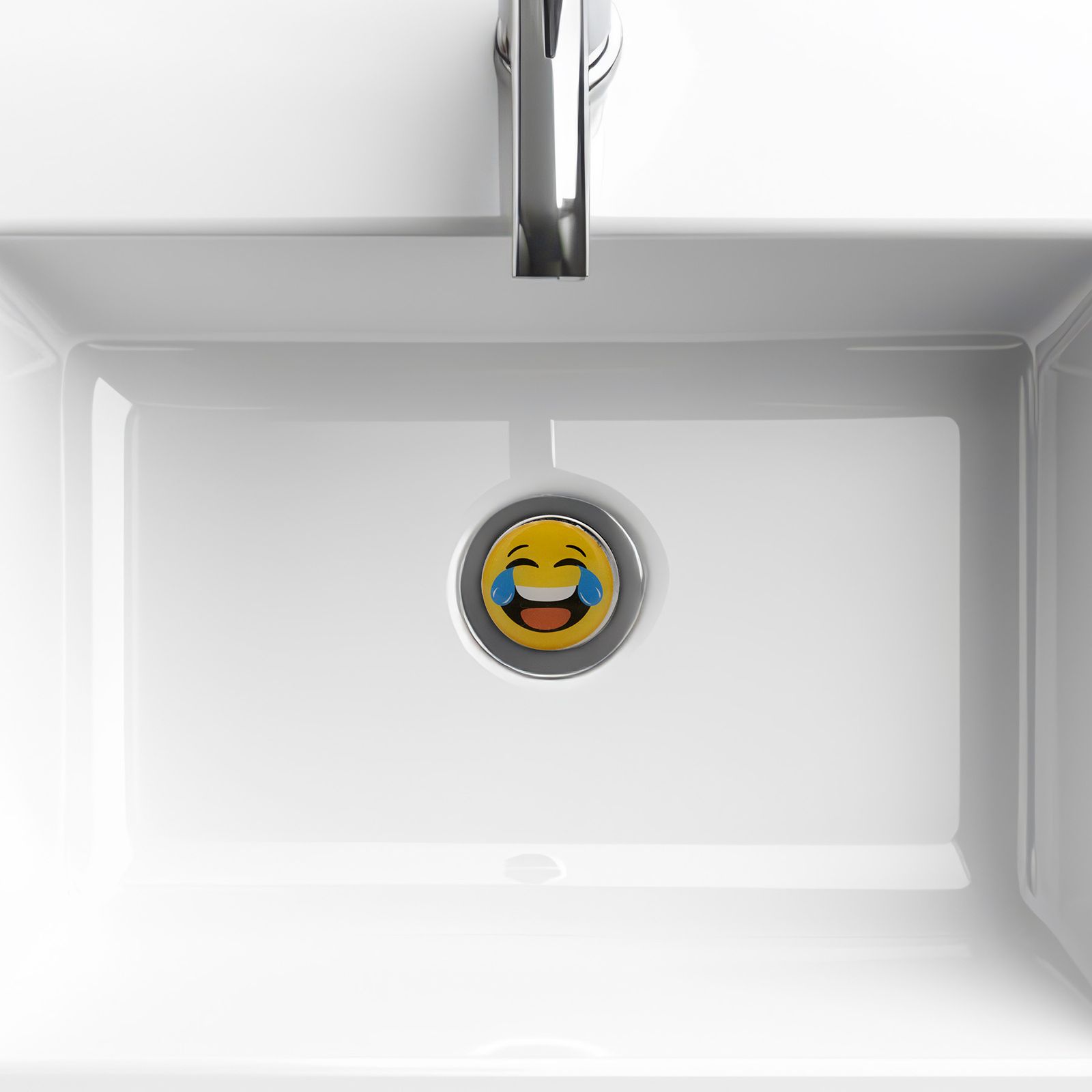 Ein höhenverstellbarer Abflussstopfen mit lachendem Gesicht. Passend für herkömmliche Waschbecken. Gummidichtung sorgt für Stabilität und Halt. Durch die höhenverstellbare Schraube lässt sich der Stopfen an die individuellen Bedürfnisse anpassen.