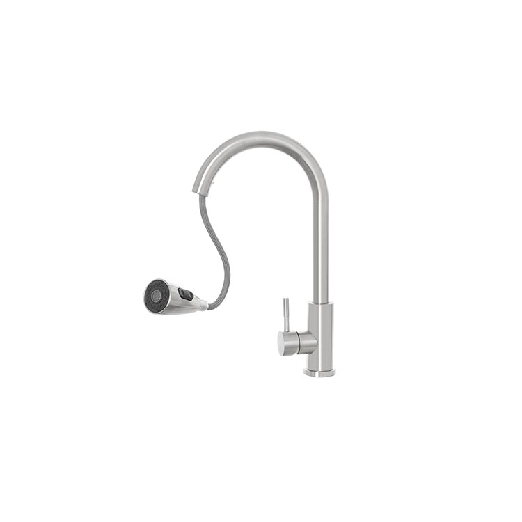 Gefertigt aus hochwertigem Edelstahl mit gebürsteter Oberfläche, überzeugt der Mischer durch Langlebigkeit und stilvolle Optik.