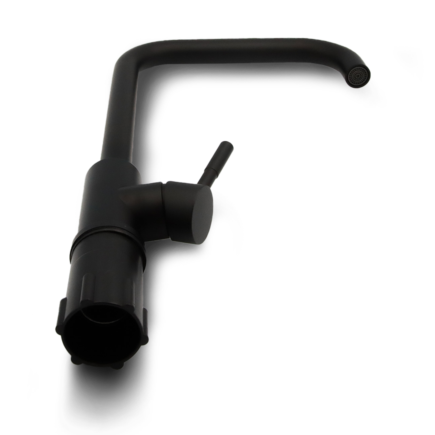 Der Einhebel-Küchenmischer Serie Kitchen in edlem Schwarz matt von Feridras vereint modernes Design mit höchster Funktionalität.