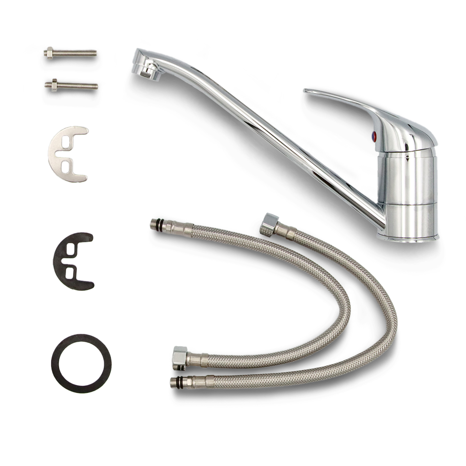 Der Küchenarmatur Serie Kitchen von Feridras ist die ideale Lösung für moderne Spülen mit niedrigem Auslauf.