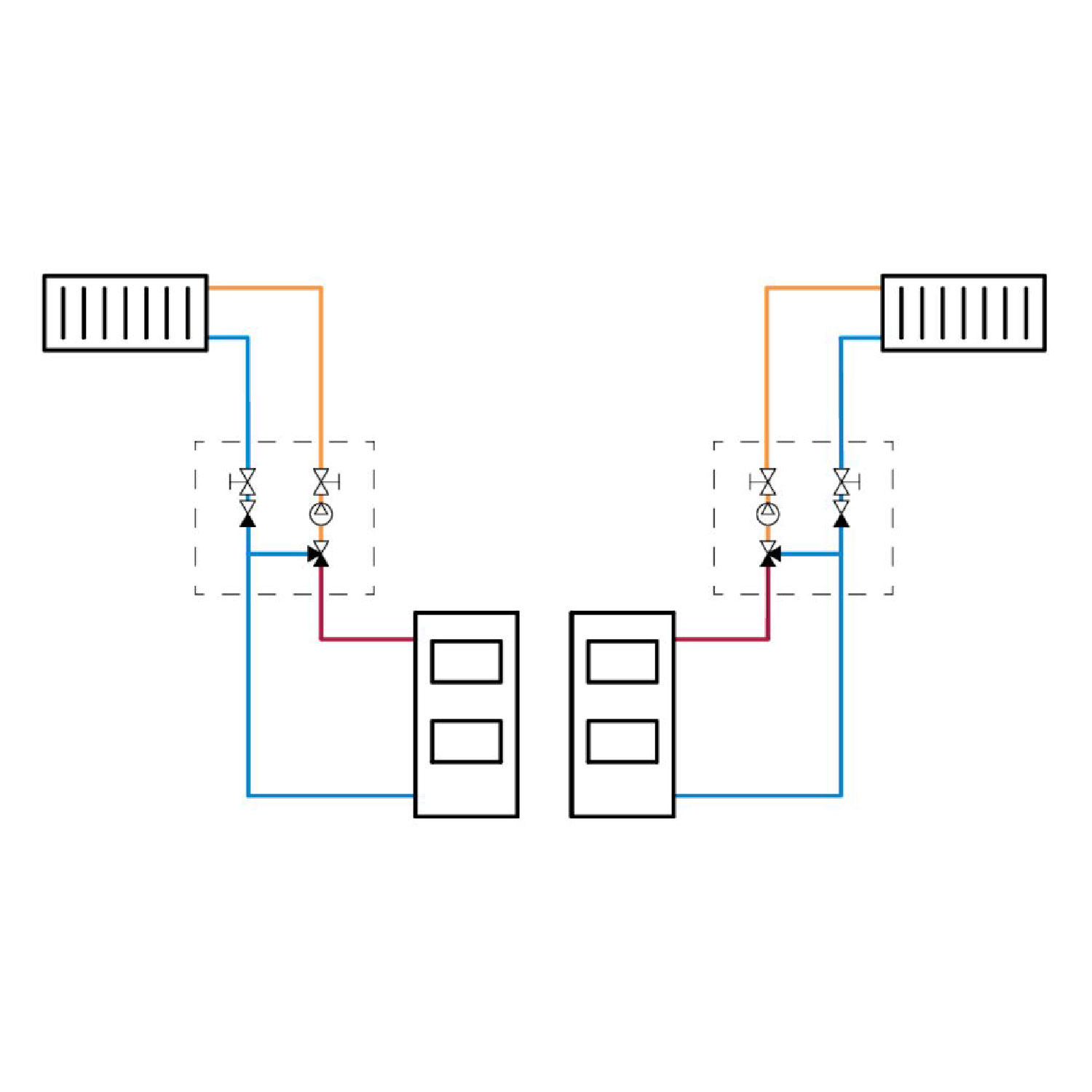 Die LK862 Pumpengruppe ist geeignet für Heizsysteme, bei den eine Nebenversorgung gewünscht wird. Ein Drei-Wege Mischventil ist enthalten.
