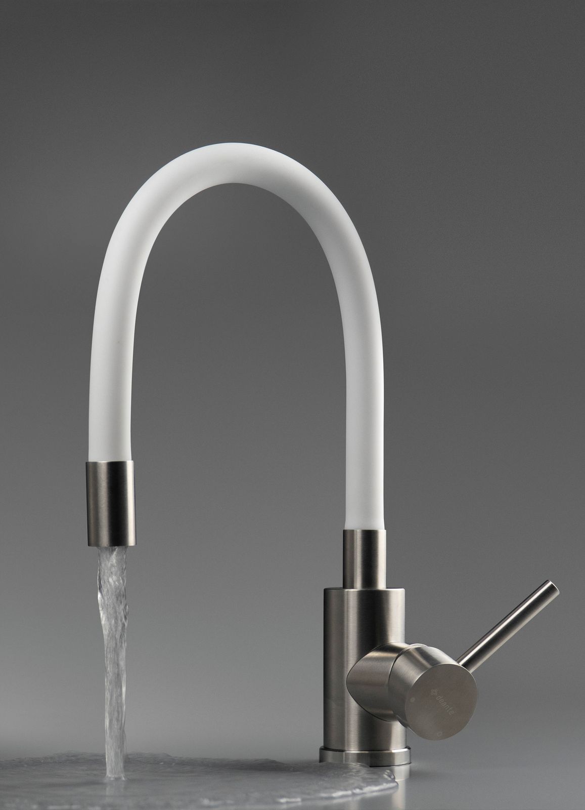 Weiße Küchenarmatur mit flexiblen Hahn ''LUNO''