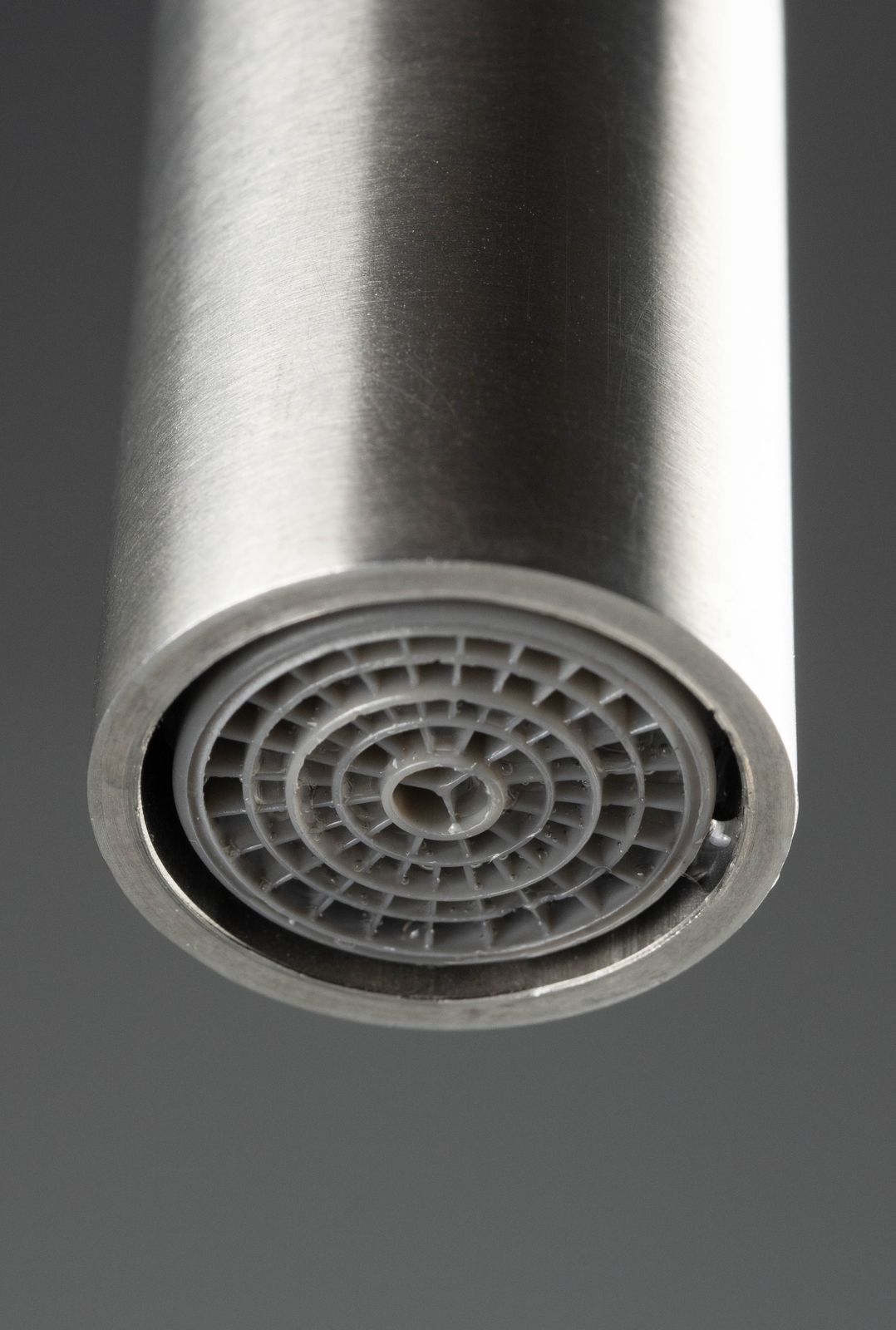 Der Wasserhahn ist mit einem Luftsprudler ausgestattet, der den Wasserstrahl optimal belüftet und weich macht. Diese Lösung verbessert den Bedienkomfort und reduziert gleichzeitig den Wasserverbrauch.