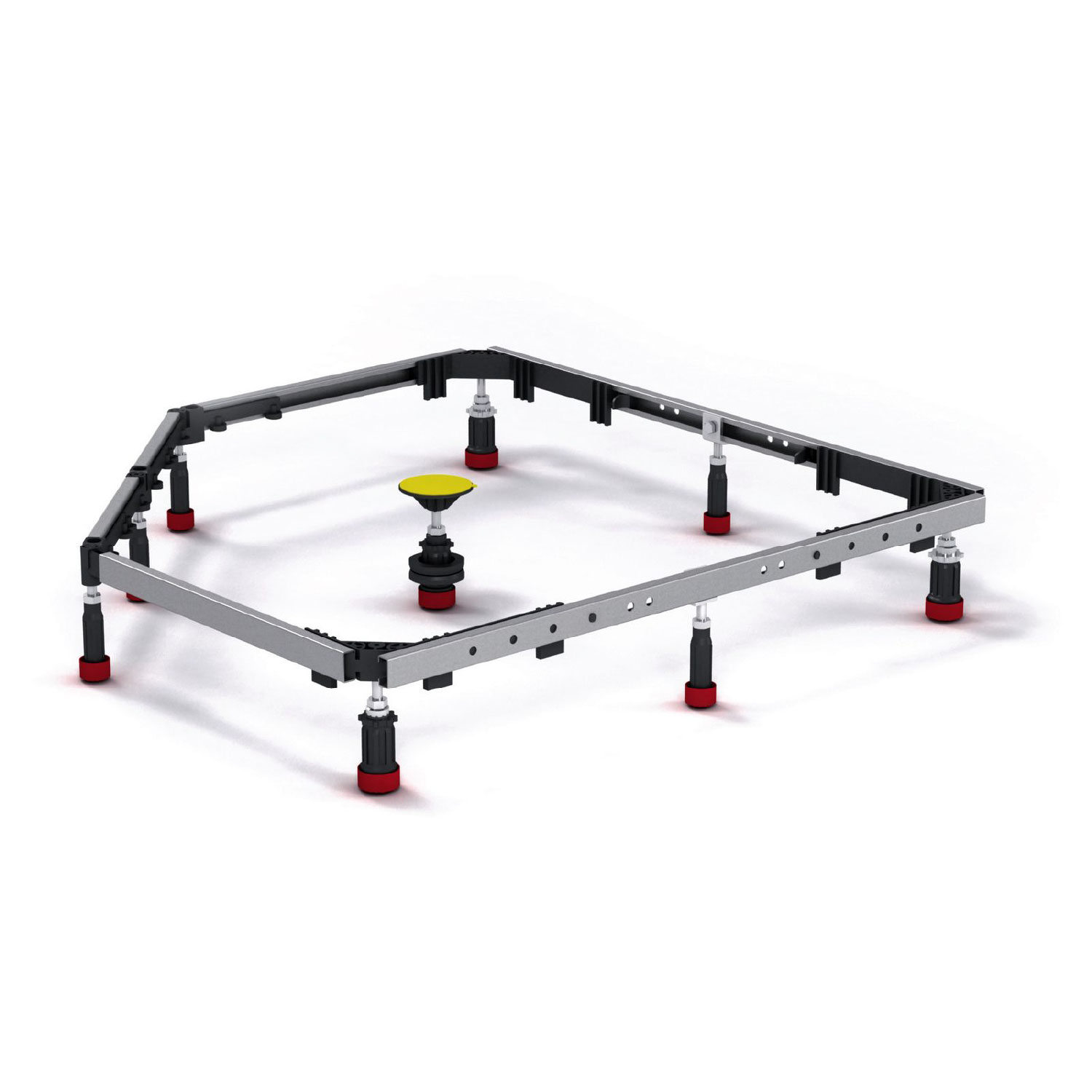 Montagerahmen für den Einbau von extra- & superflachen 5-Eck- & 1/4-Kreis-Duschwannen aus Stahl, Acryl und Mineralguss.