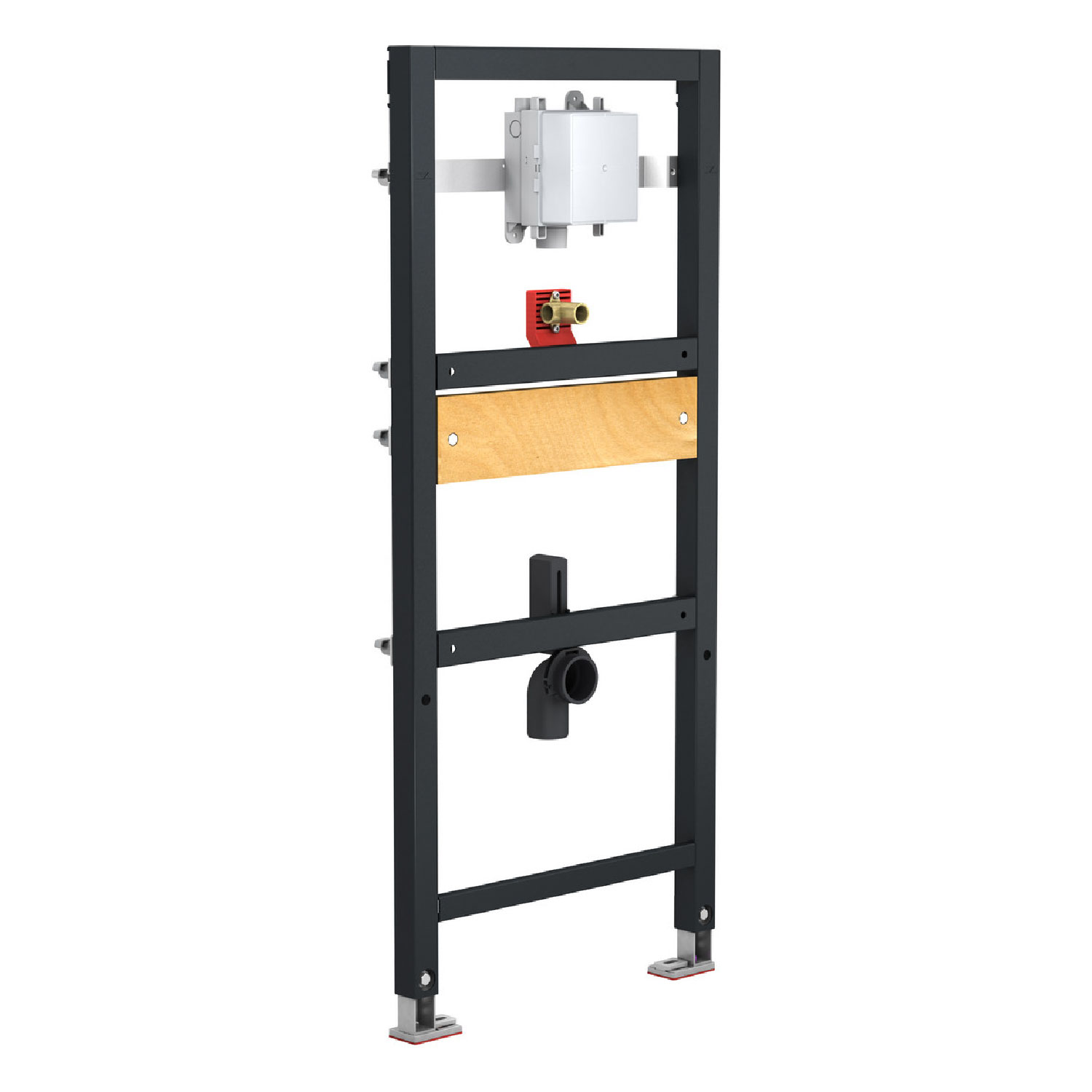 Die ist ein vormontiertes Montageelement für ein Urinal mit verdecktem Zulauf von hinten, zur Kombination mit elektronischem oder mechanischem UP-Urinal-Spülsystem. Geeignet zur Trockenbaumontage oder Einzelmontage, vor eine Massiv- oder in eine Ständerleichtbauwand. Ebenfalls geeignet als Schienenmontage vor eine Massiv- oder vor eine Ständerleichtbauwand.