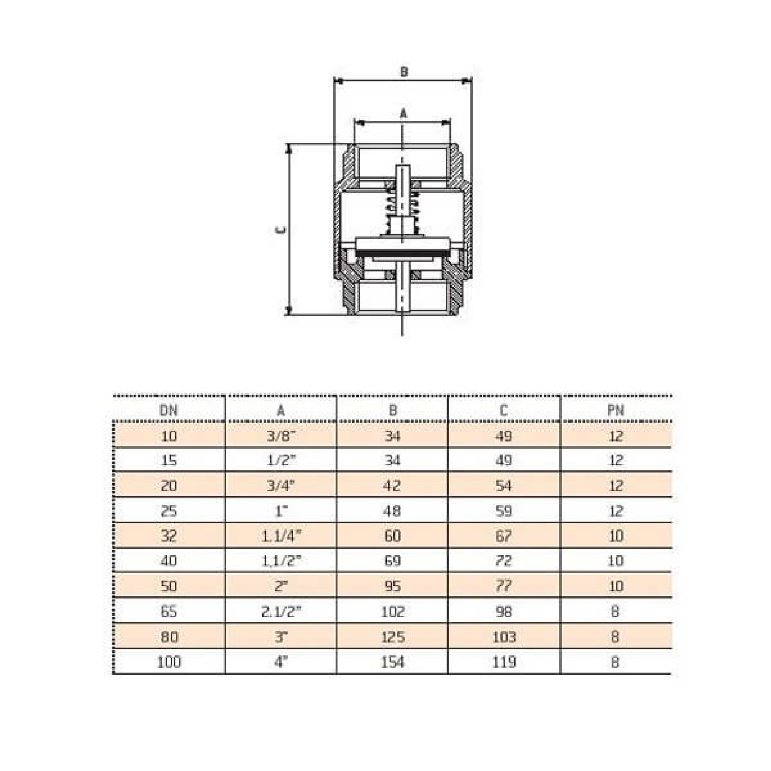 - Messing Rückschlagventil - Öffnungsdruck: 0,019 bar - Nenndruck: PN 12