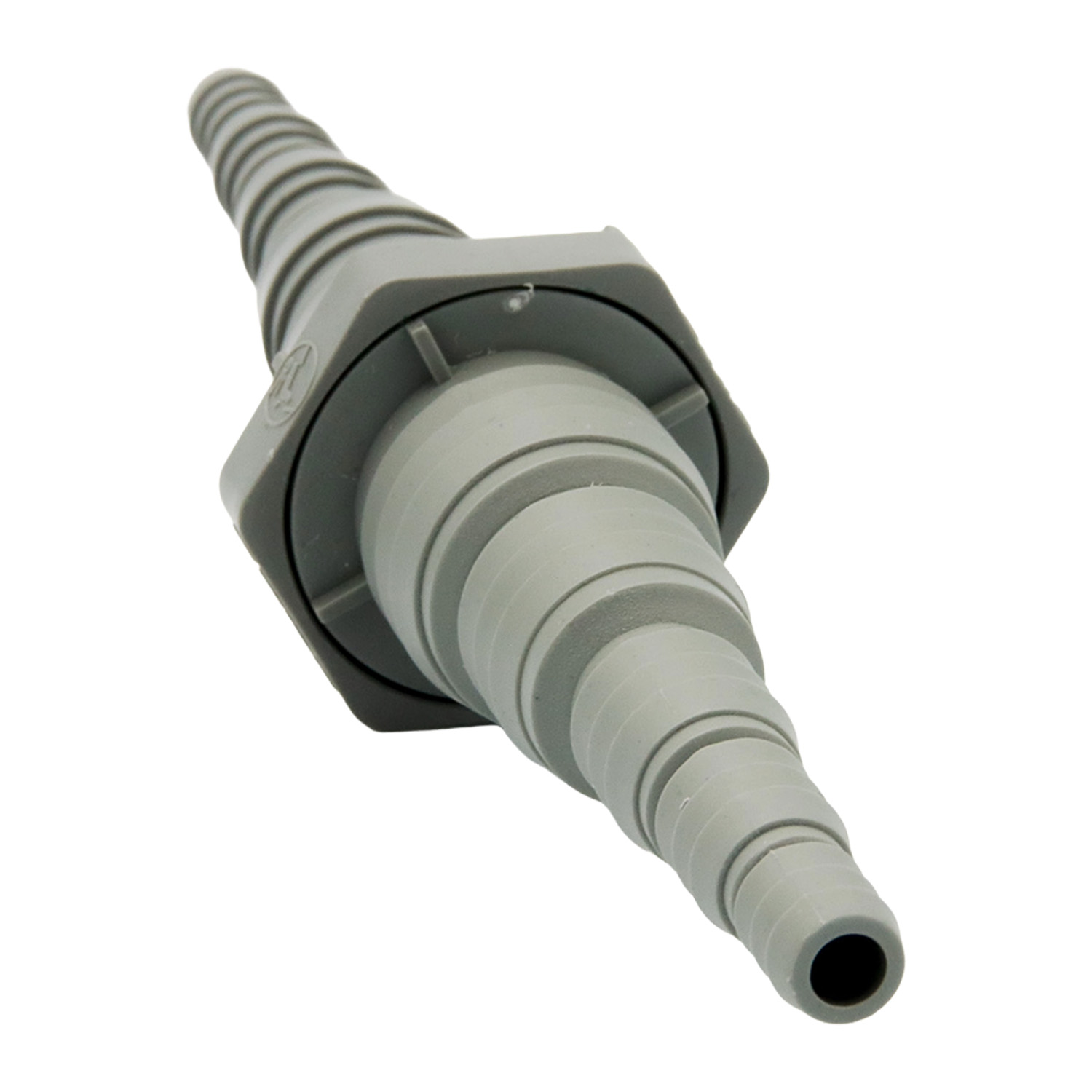 Flexibler Doppel Schlauchanschluss für unterschiedliche Schlauchdurchmesser. Der kürzbare Schlauchstutzen ermöglicht den Einsatz bei metrischen und imperialen Schlauchgrößen und reduziert den Bedarf an mehreren Verbindern. Das schlagfeste Polypropylen sorgt für eine dauerhaft stabile Verbindung, während die integrierten Rippen einen sicheren Halt des Schlauchs gewährleisten. Geeignet für Anwendungen mit chemischer Beanspruchung und wechselnden Einsatzbedingungen.