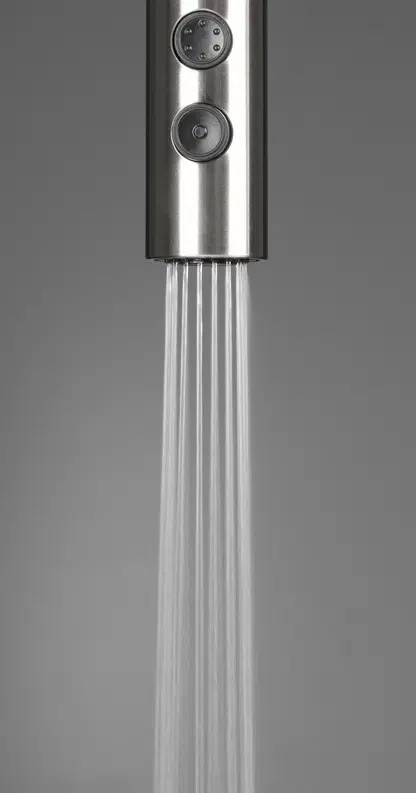 Der Wasserhahn mit herausziehbarer Handbrause erleichtert viele Arbeiten in der Küche, Sie können hohe Gefäße befüllen, Obst und Gemüse abspülen und die Spüle problemlos reinigen. Auch sperrige Backbleche lassen sich einfach handhaben, ohne Wasser auf die Arbeitsplatte zu verschütten. Praktisch, komfortabel und funktional für den täglichen Gebrauch.