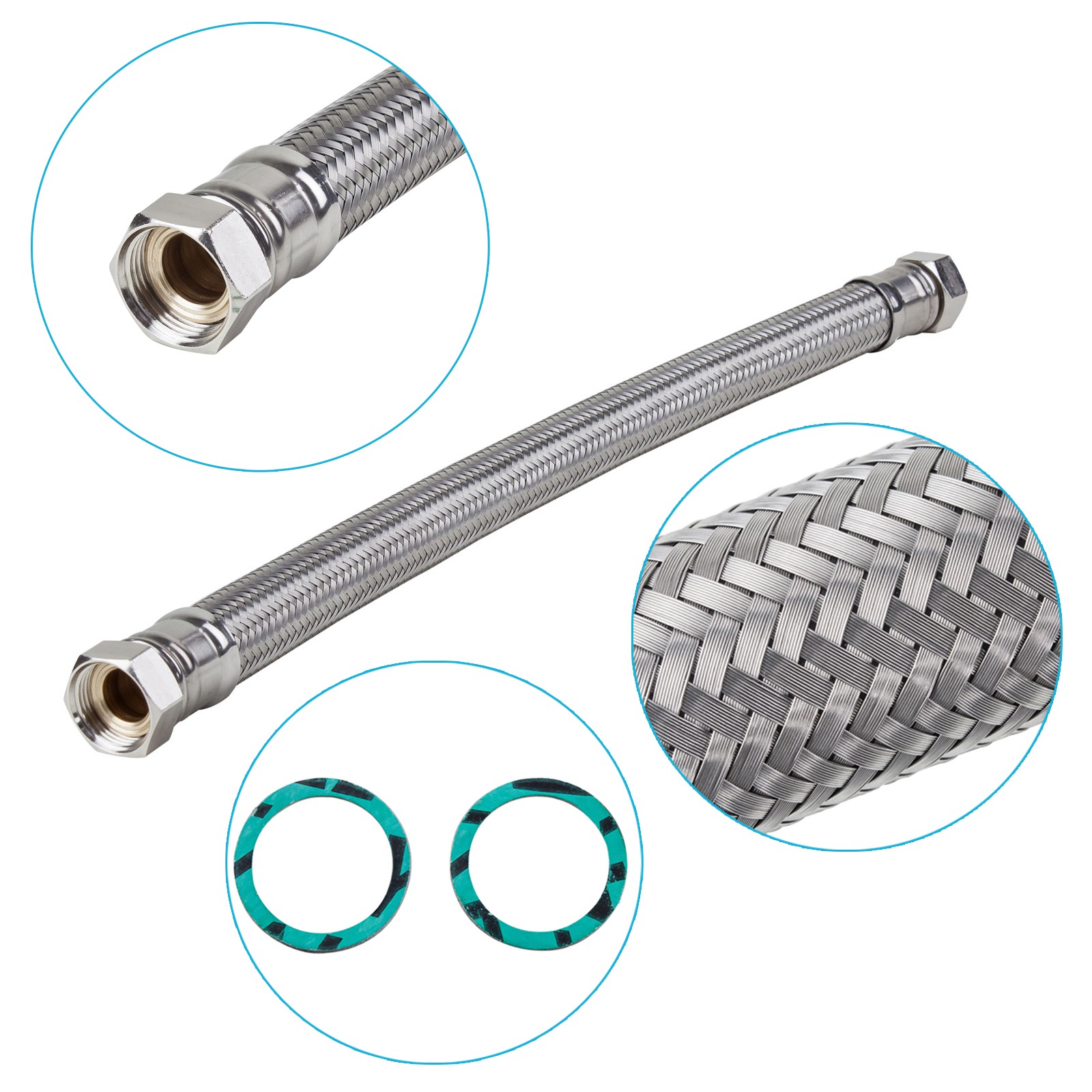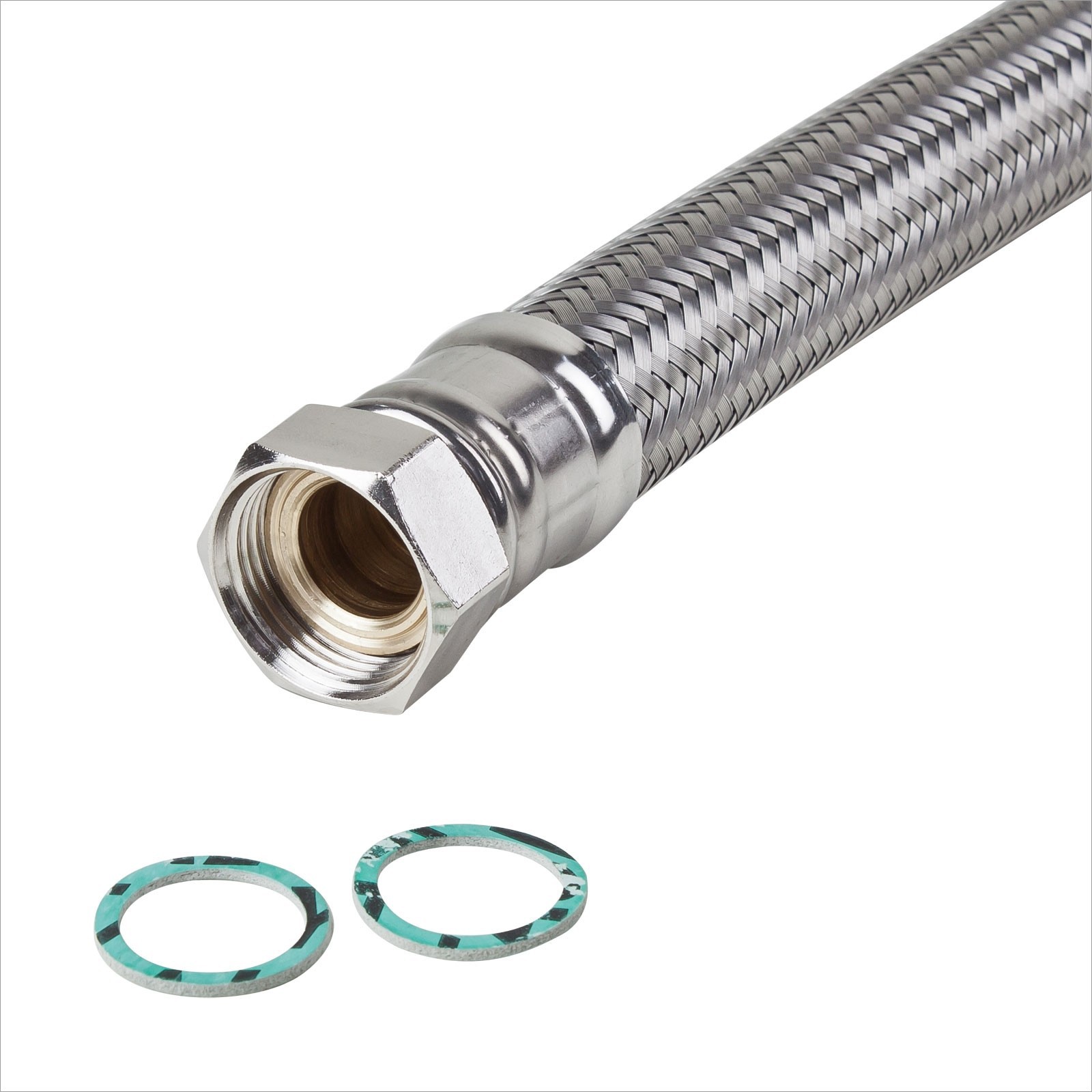 - Lieferumfang: Edelstahl Panzerschlauch 3/4 Zoll IG 30 cm inklusive zwei OHA-Dichtungen