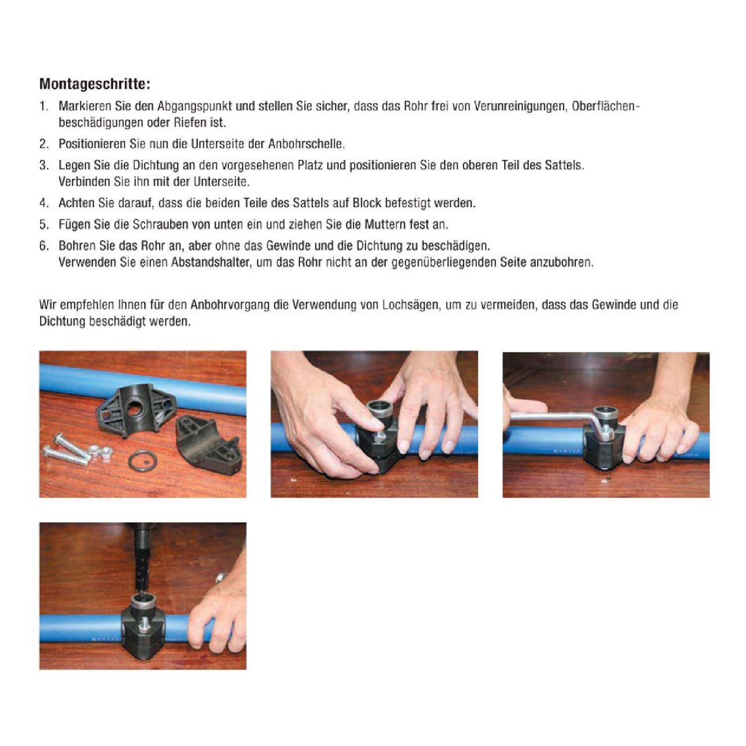 ✓ PE Rohr Anbohrsattel